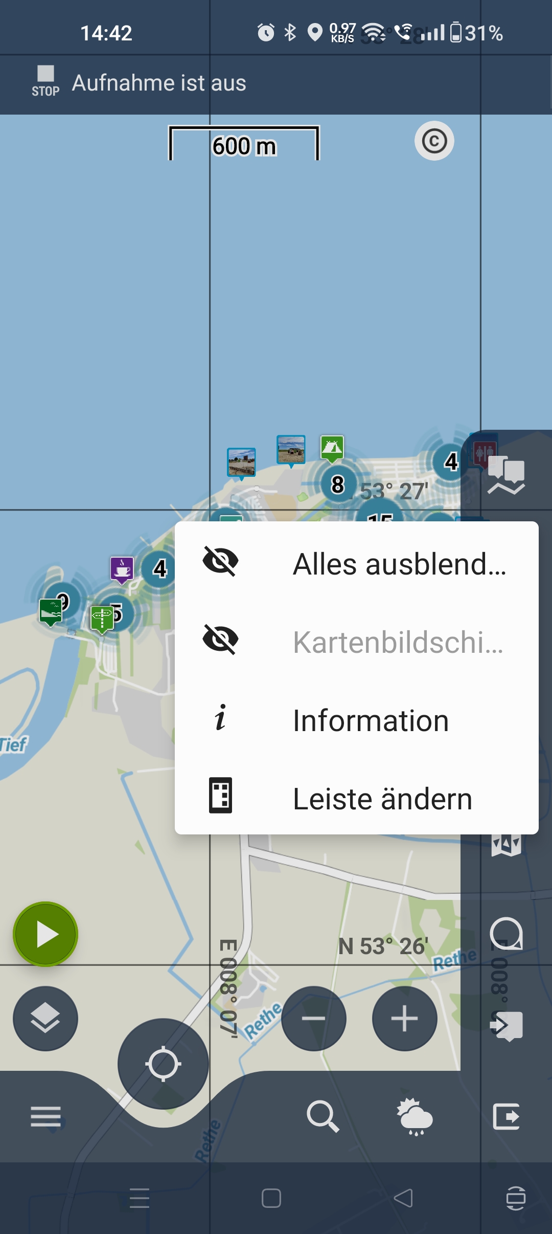 gibt es ein Schnell Knopf um die eigenen POI Fotos kurz ein und auszublenden?