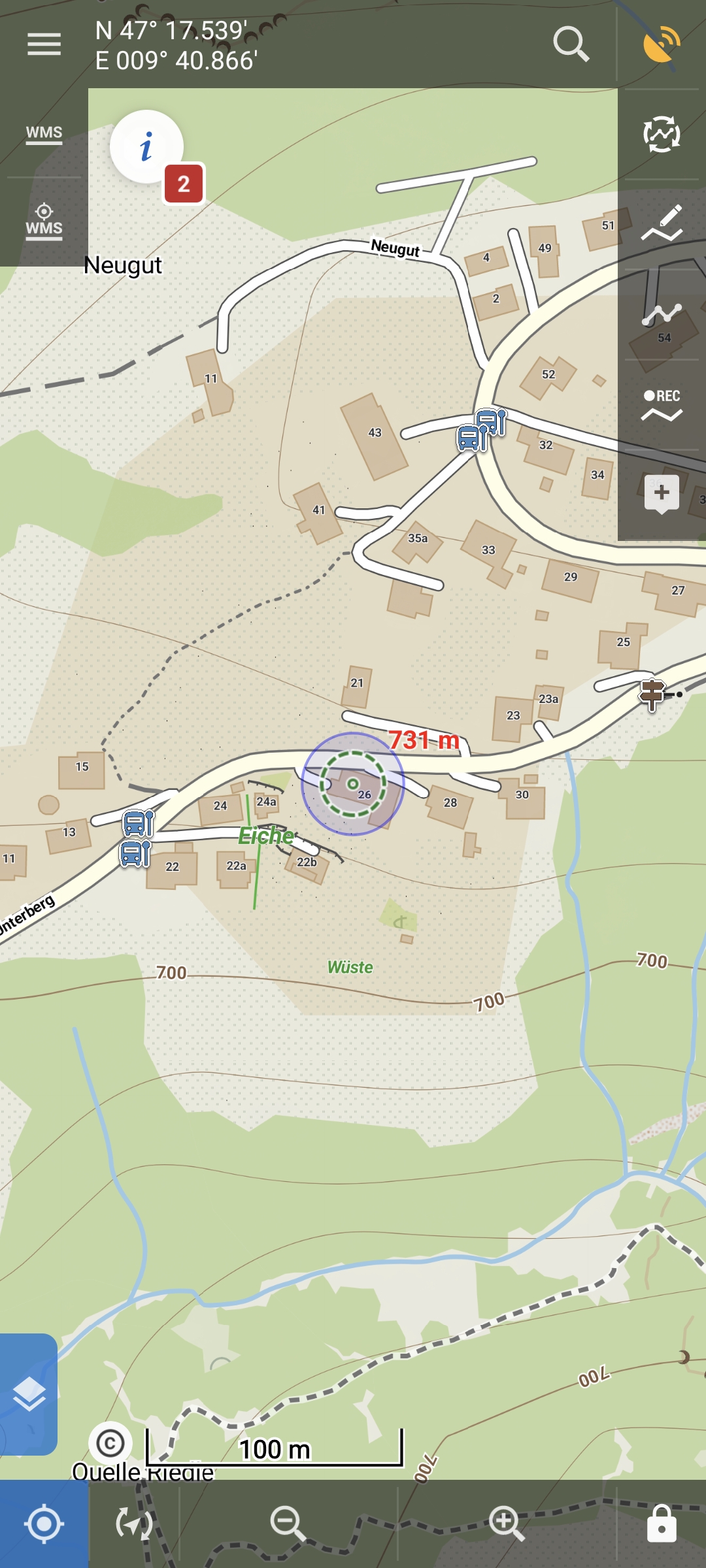 In locus map pro wird die Höhe beim courser angezeigt