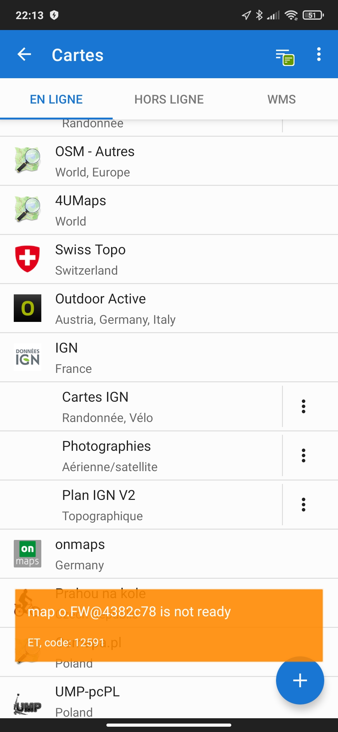 Les cartes en ligne ou hors ligne ne s'affichent plus. Mon abonnement est reconnu (prochain paiement en novembre 2023) et le problème est le même avec la dernière version de Locus 4.