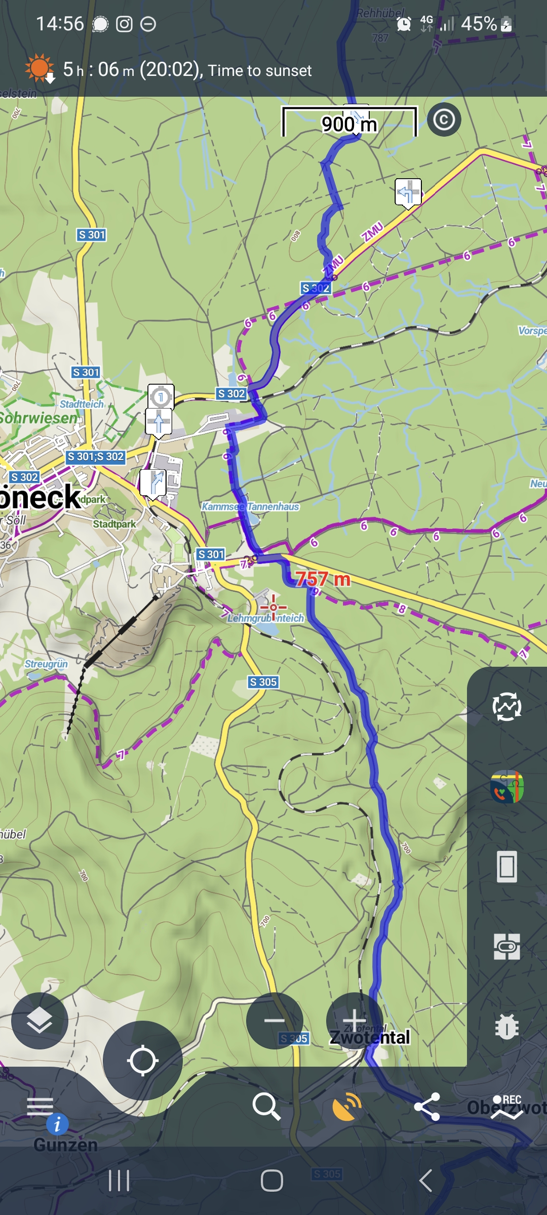 Occasionally when (re-)routing a track, Locus Map shows a lot of waypoints with navigation hints along the track. These seem to be disconnected from the track and are displayed away from the track. They are part of the track data though, as they disappear when the track is hidden.