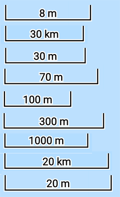 200 m - 100 m, 300 m - 300 m, 600 m - 600 m, 1 km - 1 km,