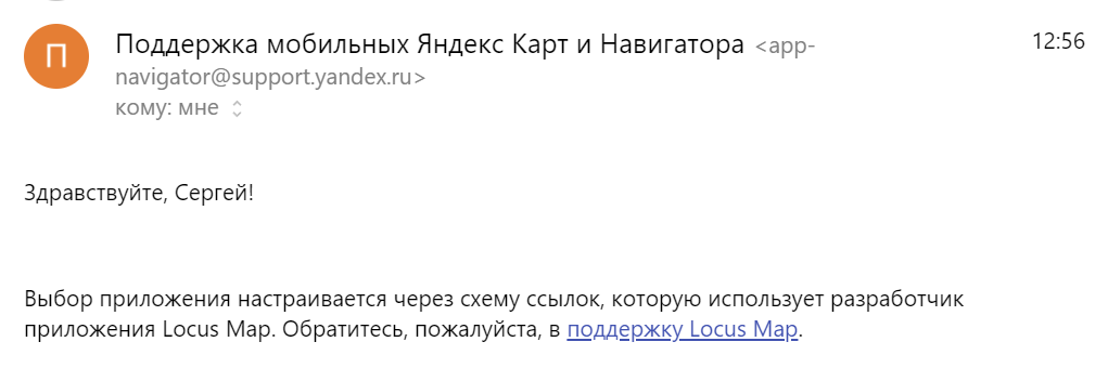 In navigation, when switching to an external application, it is not possible to go to Yandex Navigator. Yandex Navigator developers say that the problem is in the link scheme used by Locus developers