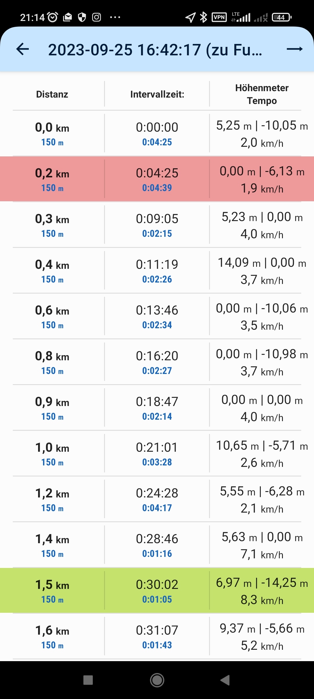 2. If an interval is defined that is above 100m but not clean devideable by 100 (without rest), the Interval Distances are rounded to 100m. E.g. if you set interval to 150m, it shows im km: 0|0,2|0,3|0,4|0,6|0,8|... It is unclear why the roundings are not exact (instead of 0,4 there should be 0,5 because 0,45km is normally rounded to 0,5 km, see also 0,75 which is rounded to 0,8). Suggestion: a) Show more that 1 digit after the comma as intervall needs it. So you don,t need to round. For given example 150m Interval, show 0|0,15|0,3|0,45|0,6|0,75|... Or b) show allways three digits after the comma to also support defined intervals of 155m. Or c) only allow defined intervals divideable by 100 (enrich notes of 1. suggestion about valid values).