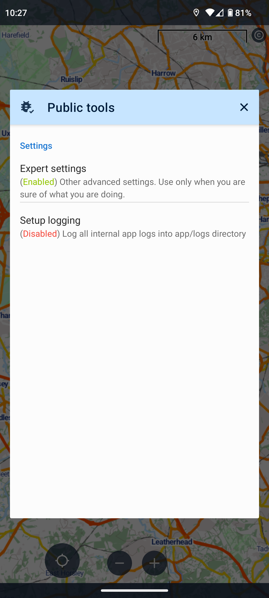 Hi. Strangely, the Device Info option does not appear. All I have are options for Expert Settings and Log to File.