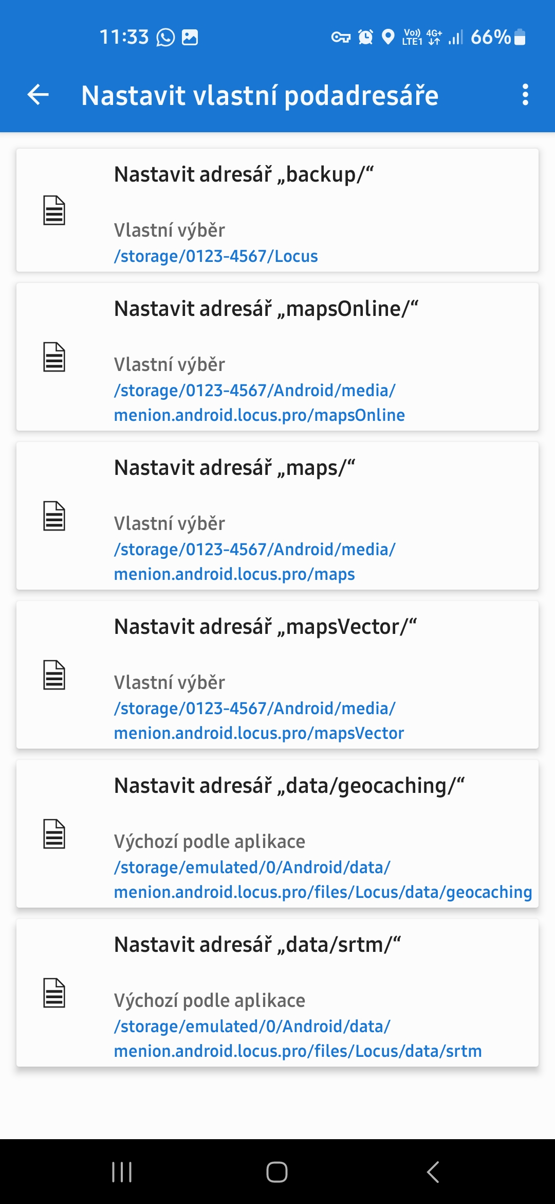 Locus jsem zkusil odinstalovat a znovu nainstalovat. Následně po spuštění jsem měl vybrat hlavní adresář, ten jsem zvolil na SD kartě, stejně tak všechny ostatní podadresáře. Každopádně stále nemohu najít kalibrované mapy.