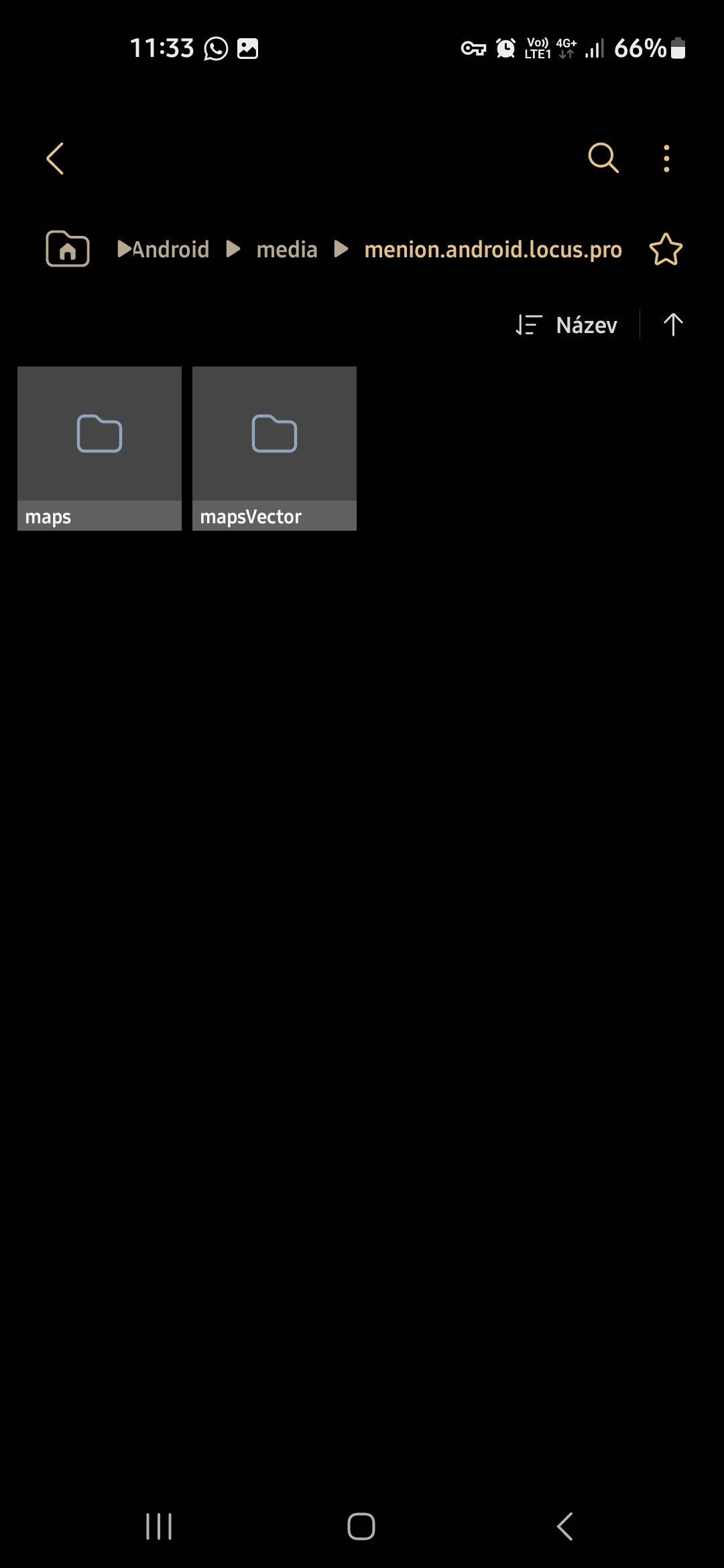 hlavní adresář aplikace máte v /Storage/emulated/0/Android/data/menion.android.locus.pro/files/Locus/, nikoli v /Android/media/. Tam jsou pouze složky pro mapy. Takže nakaliboravé soubory máte fyzicky v /Storage/emulated/0/Android/data/menion.android.locus.pro/files/Locus/mapItems/calibrated_maps.