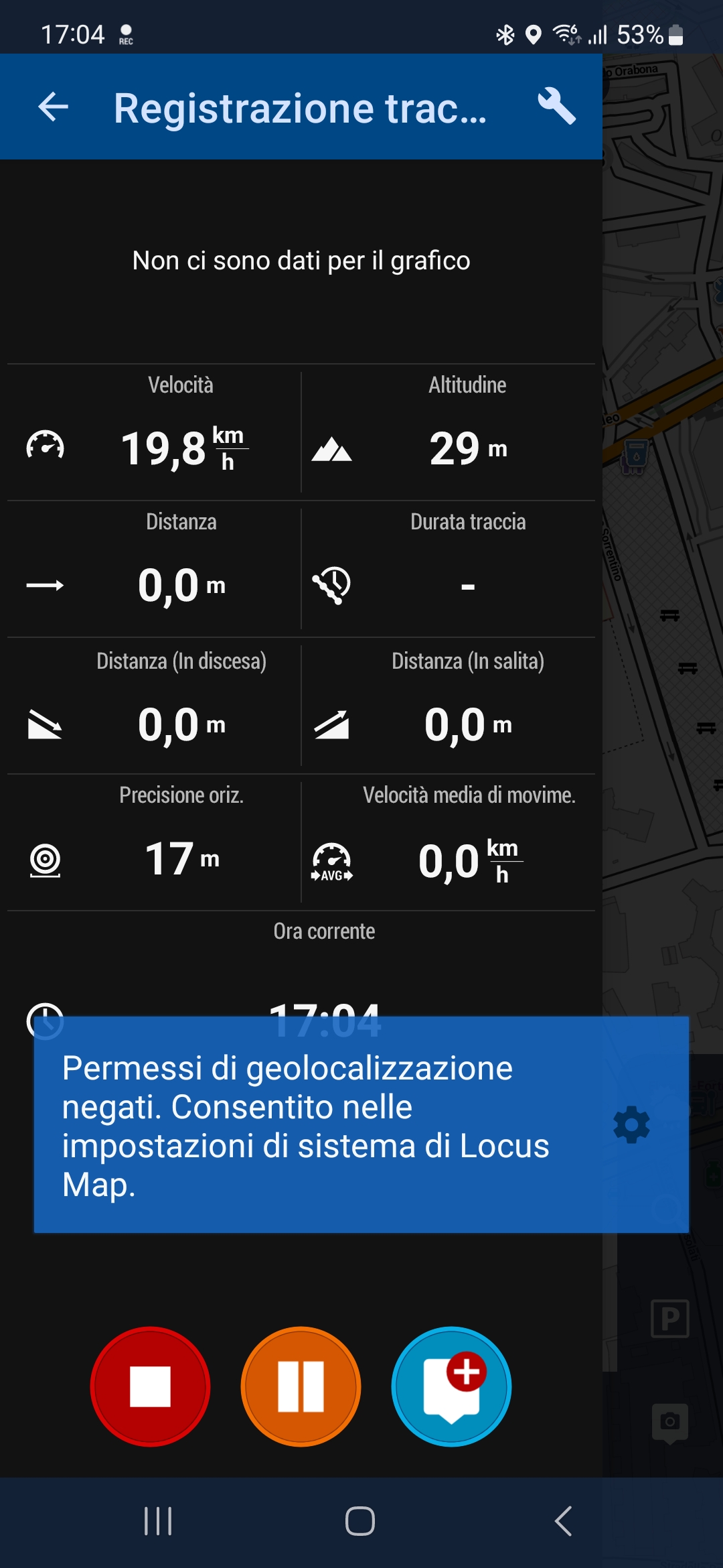 Samsung A54, Android 13, One UI 5.1, Locus Map 4, 4.19.0, abbonamento Silver, risulta impossibile registrare la traccia se in background. Seguite le indicazioni fornite anche reinstallando la App.