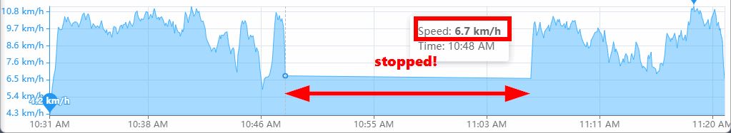 Web planner shows 6km/h speed while stationary for 15 minutes