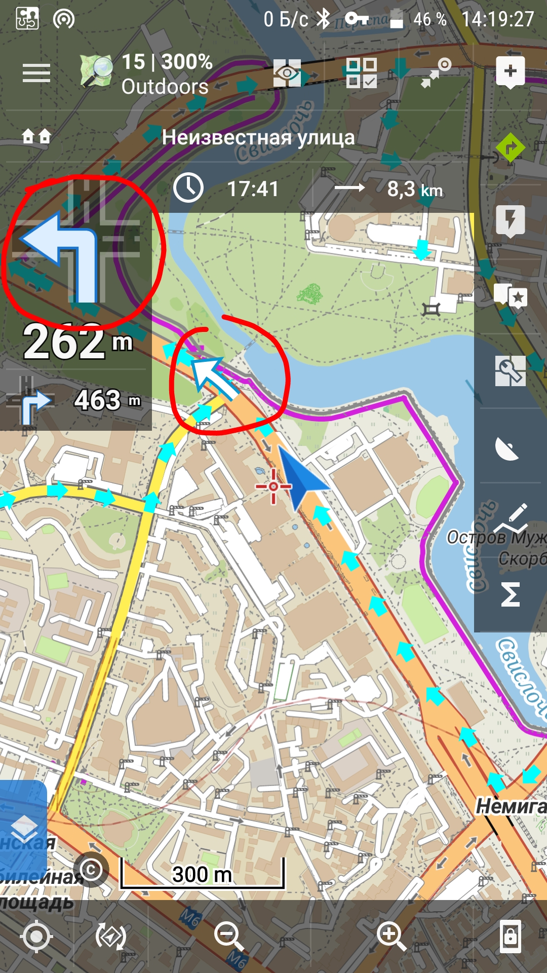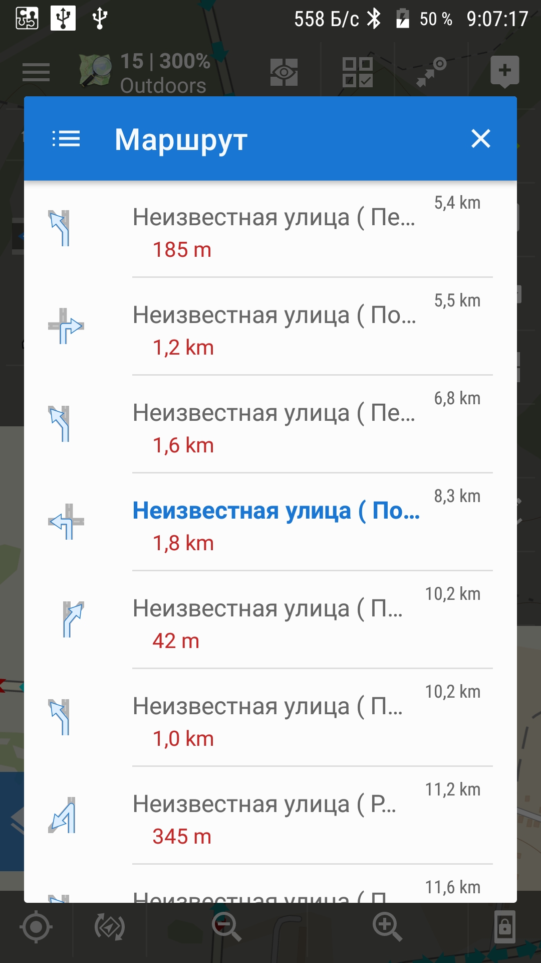 When I was at the point "78 km to the finish line", Locus gave me the command "turn left after 300 meters", but at this point there is no road to the left. In addition, the "go straight" command is displayed at this intersection. I was driving straight. When I returned and approached the same intersection, the Locus was silent, although I was waiting for the command to "turn left". And I was driving by until I heard the command "You're off the route." This situation has been repeated in every such case.
