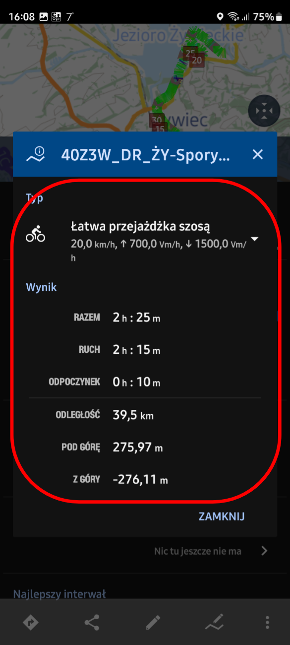Especially since in [Tools] the [Estimated travel time] option - sees that we are dealing with a bicycle and estimates the time quite correctly for it!