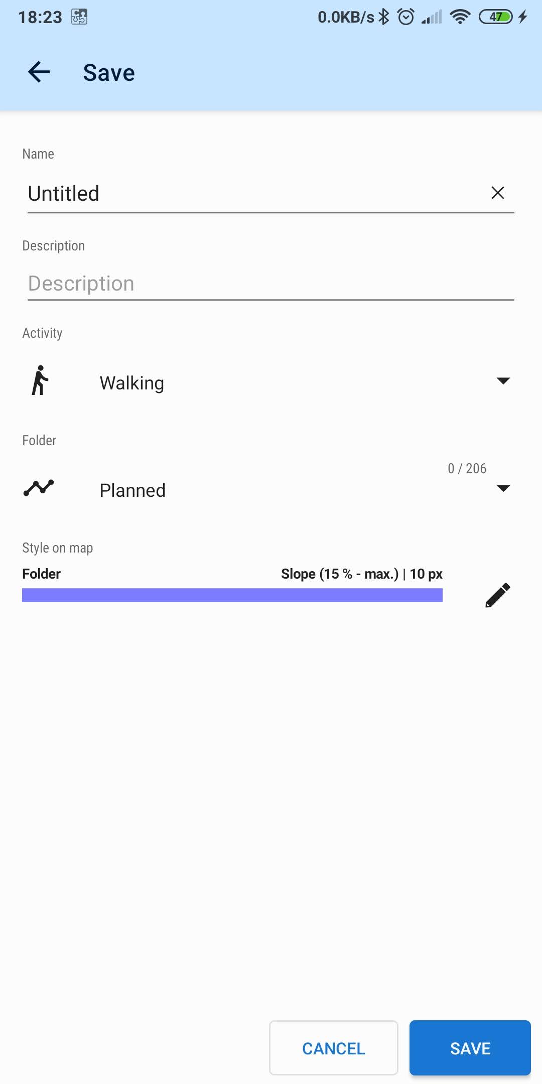 Saving new planned routes: name suggested always 'Untitled'