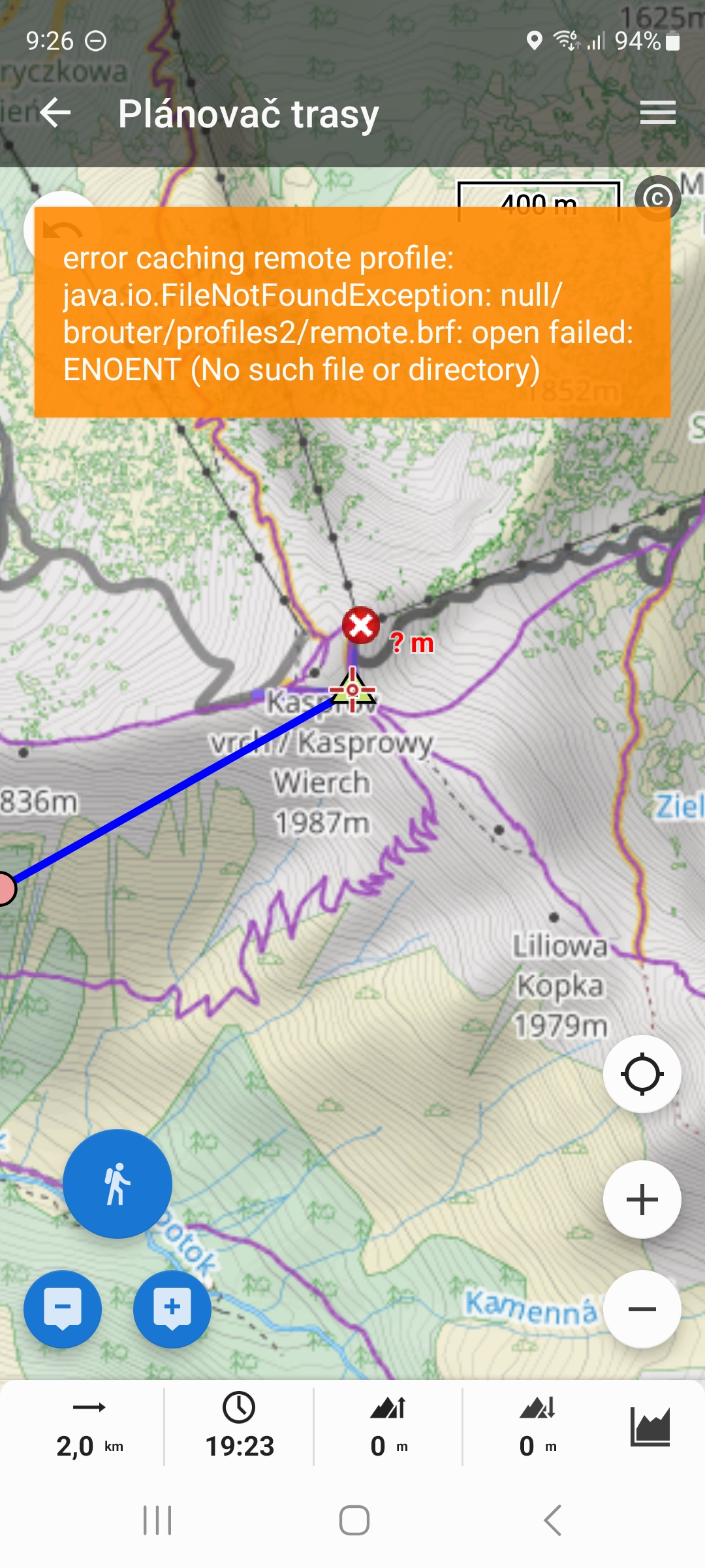 Dobrý deň. Používam locus classic a nemôžem naplánovať turistiku v Tatrách. Konkrétne žltý turistický chodník z Liptovského košiara na Kasprow vrch. Profil som skúsil turistiku a aj chôdzu. Používam GraphHopper. V prílohe posielam screenshot