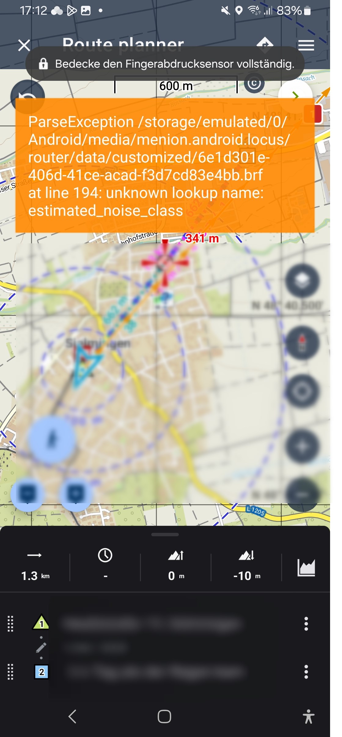 I get this message (see screenshot) when I start a navigation. Is this maybe the same problem I had here or is it a separate problem?