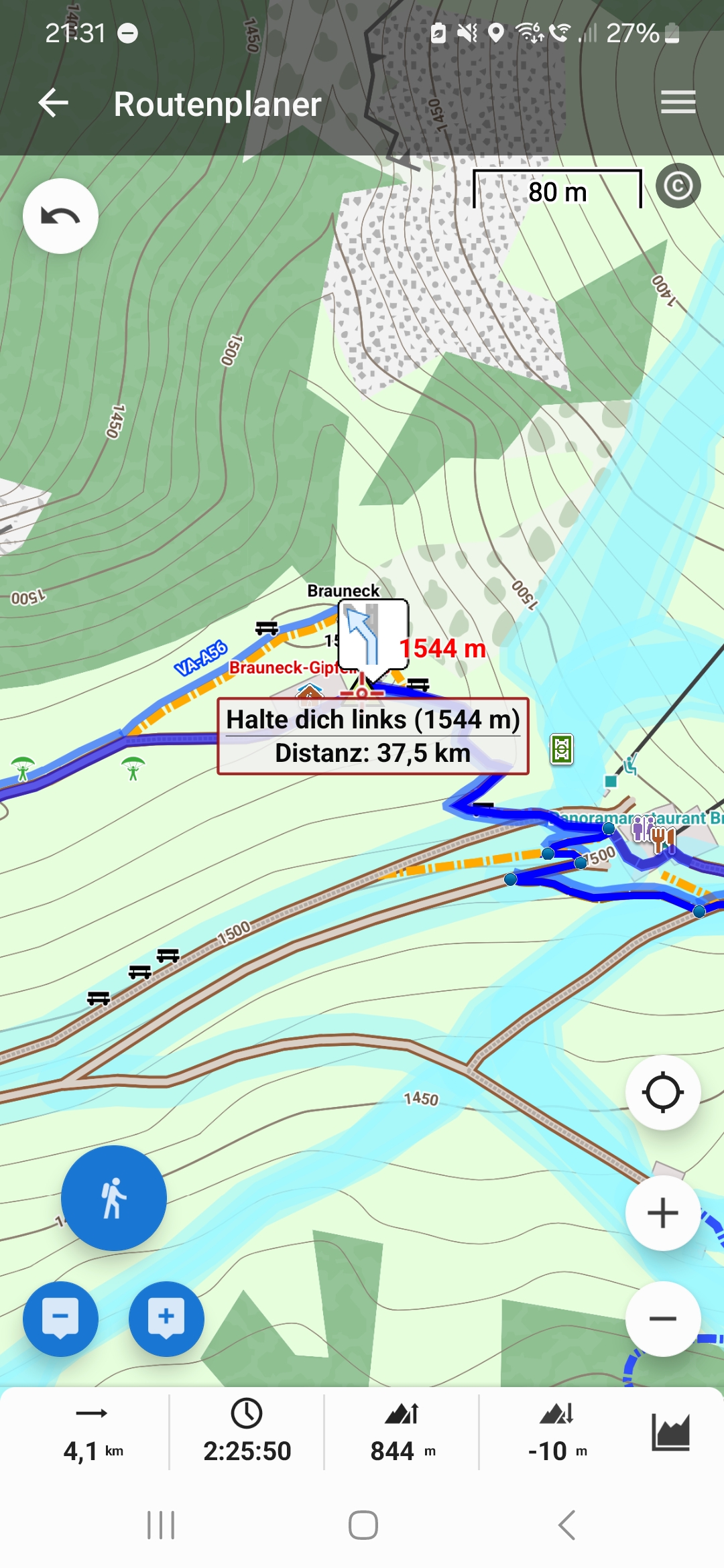 When creating the track, the route to this specific location is showing just 844m D+ and -10m D- (screenshot Screenshot_20240521_213150_Locus Map Classic.jpg).