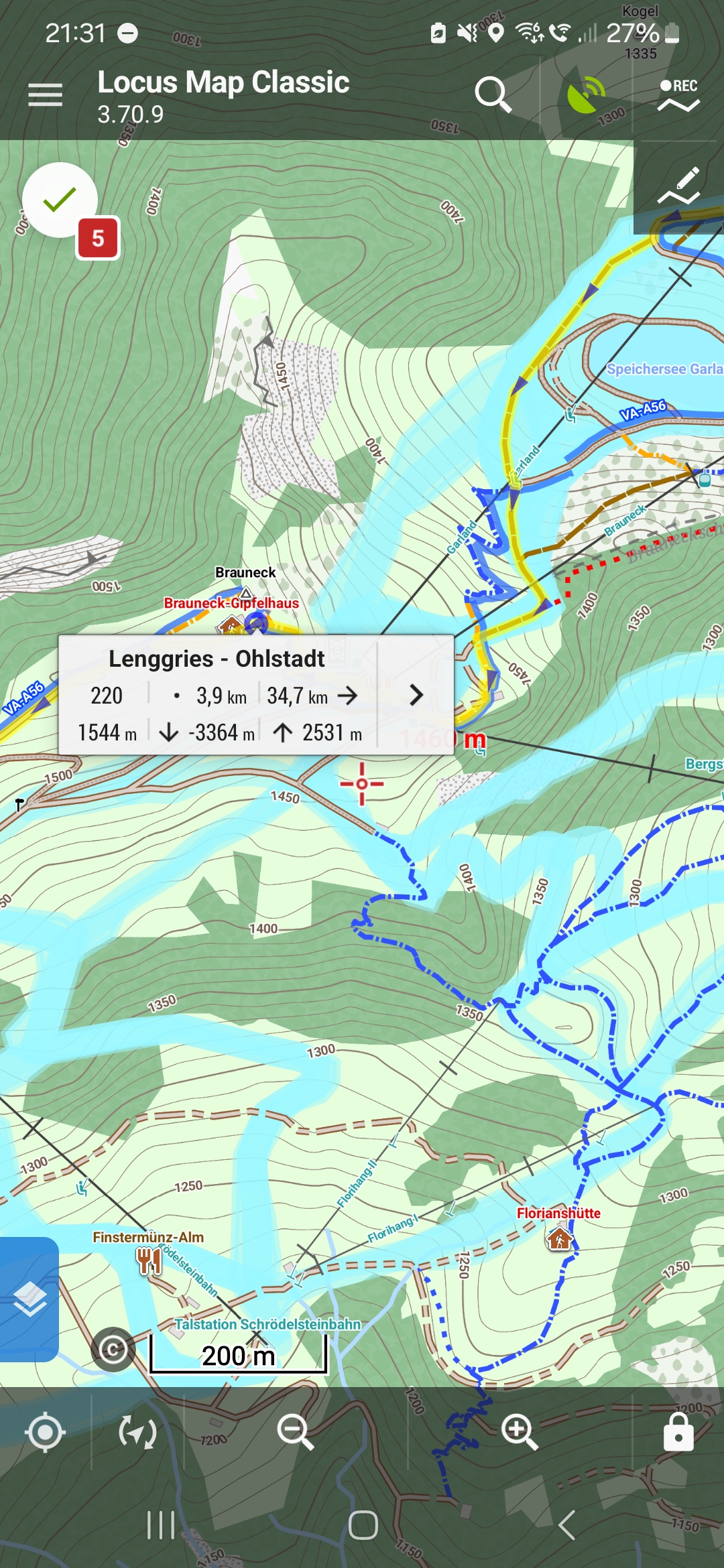 My environment: Samsung S23+, Android 14, Locus Map Classic 3.70.9, maps: openandromaps (Alps East).