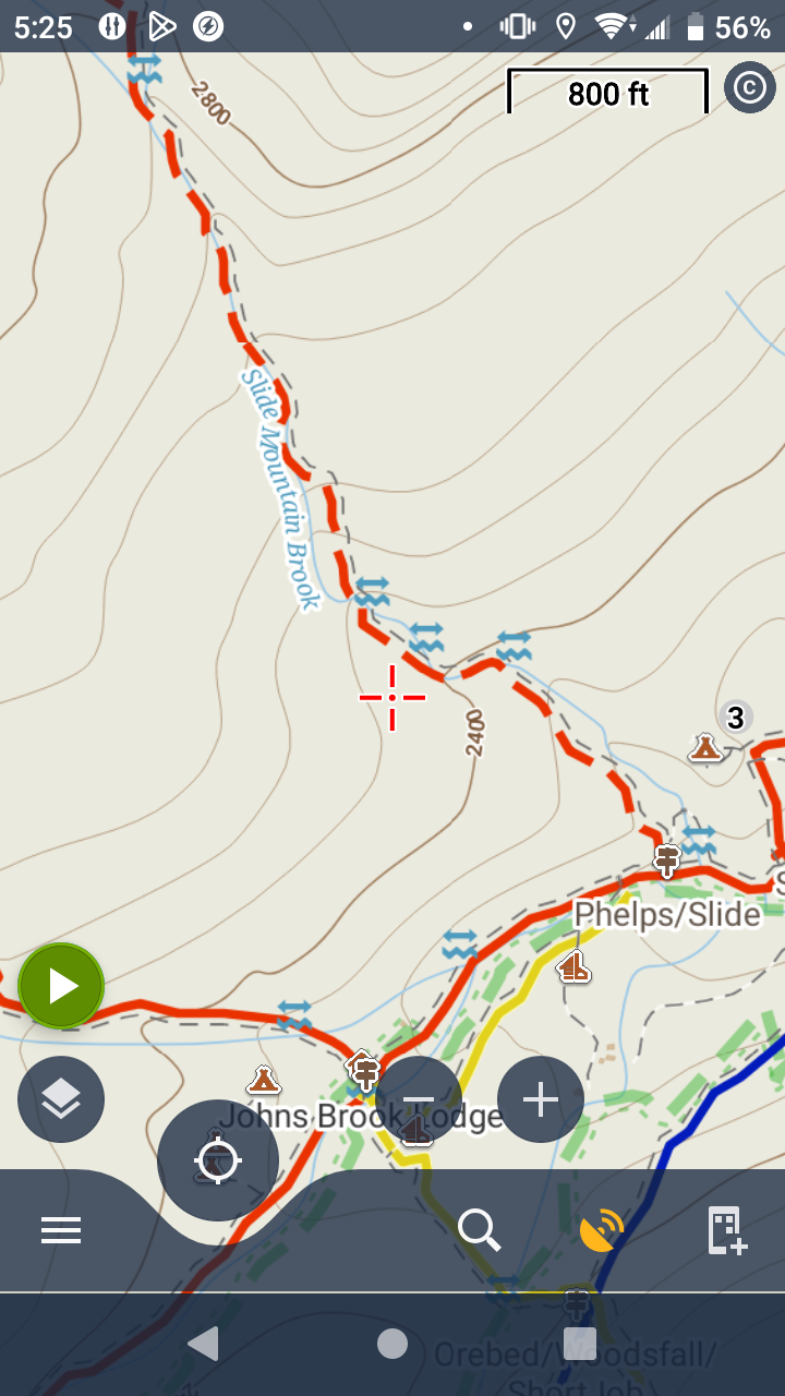 I downloaded the offline LoMap for New York State dated Mar 14, 2024. It does not show the contour lines for elevations that are multiples of 200 feet but not of 400 feet. See attached screenshot showing the hillside above John's Brook Lodge. You can see the labeled dark contours for 2400 and 2800, and the unlabeled contours every 50 feet, except there is no 2600 foot contour.