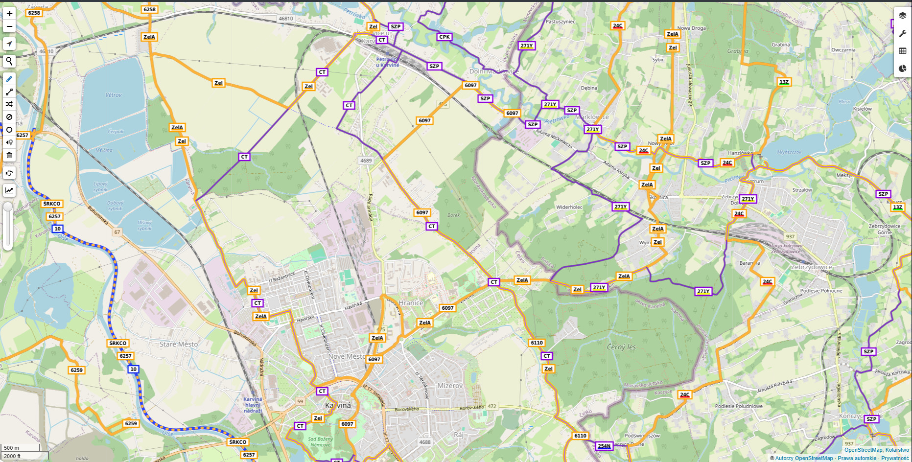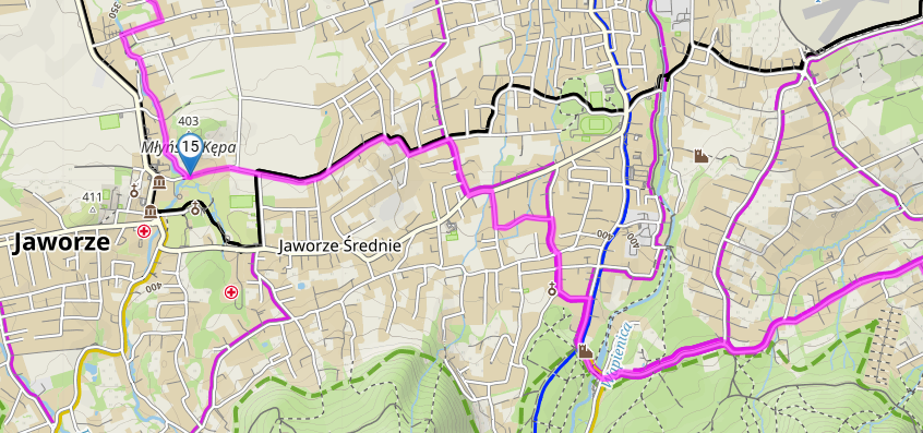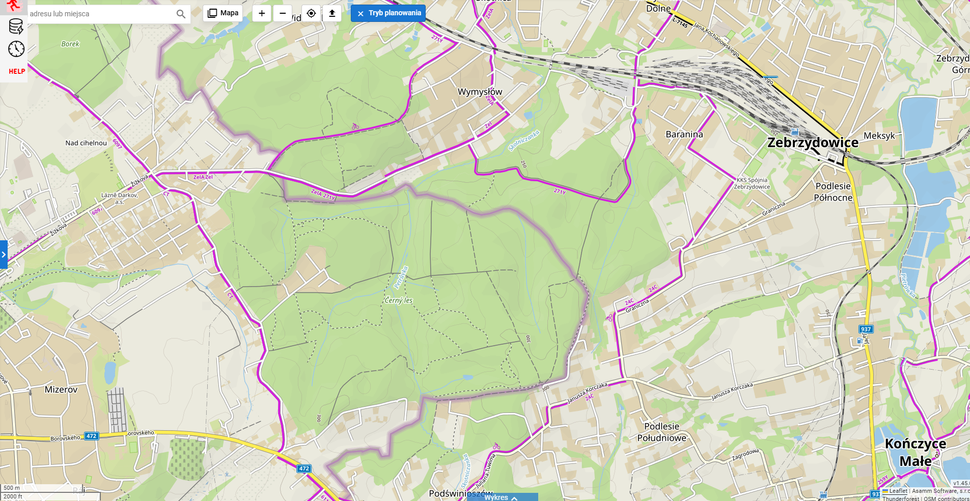 screenshot 01 - shows a section of the route, I plan to change its course from point 15 - along the black trail.