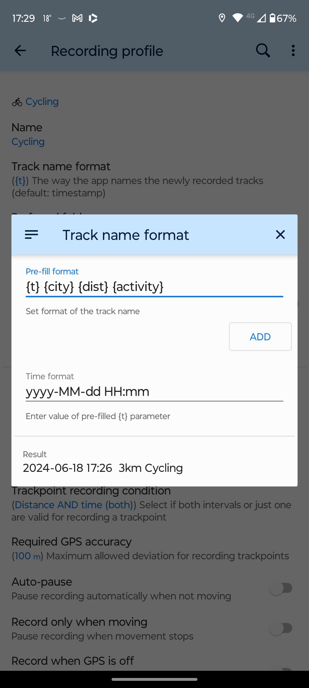 I'm suddenly having issues with the "Track name format" within "Recording profile" in that the {city} parameter isn't working - it doesn't get replaced with the starting location in an actual track, and nor is it represented in the "Result" preview at the bottom of the "Track name format" dialogue.