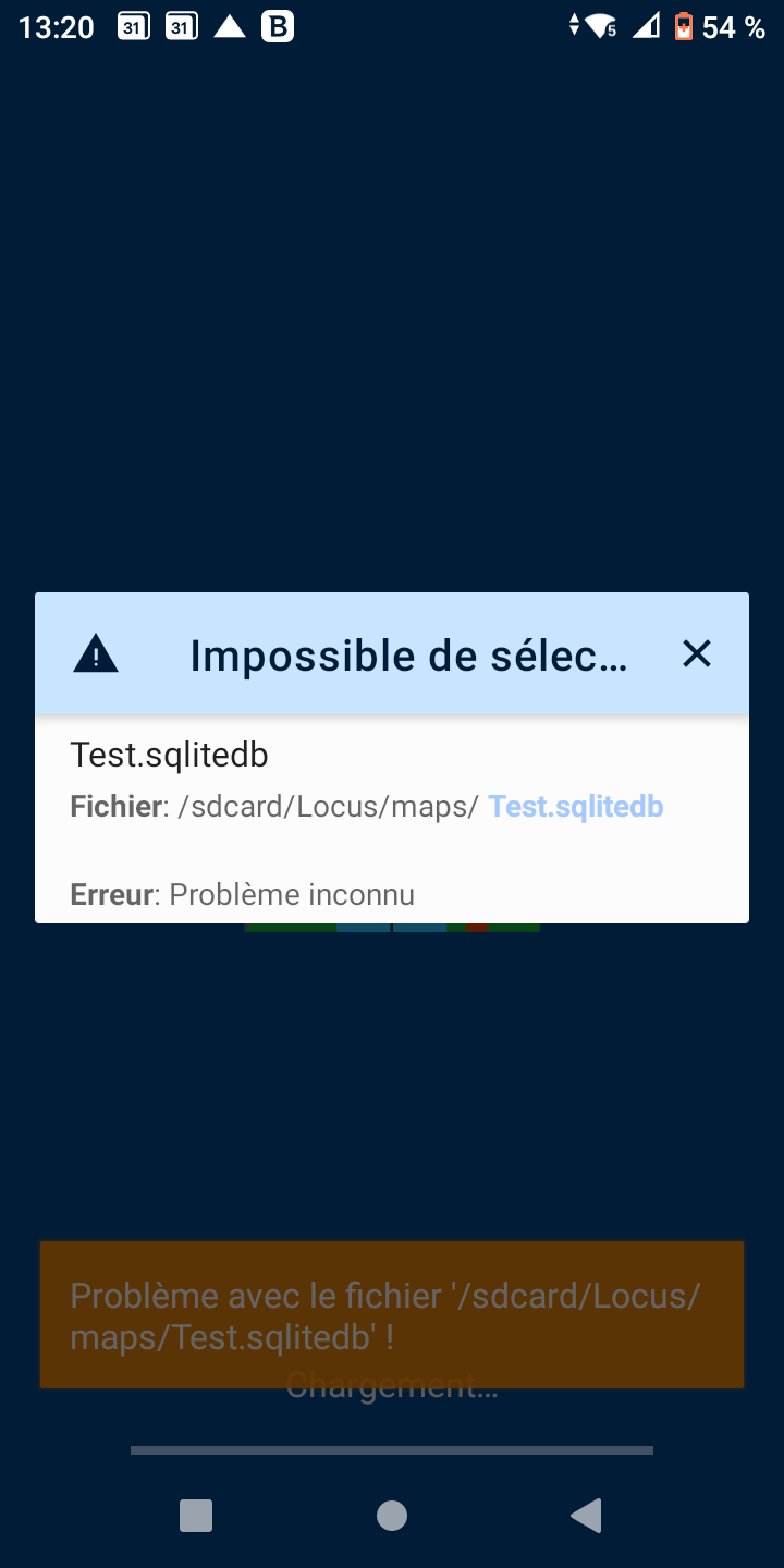 /sdcard/ is not an external SD card but an Android system name for the internal storage (an external SD card is named with a code, e.g. ABCD-XYZW). The message announces that a test.sqlitedb file located in the Locus/maps directory is probably damaged. Remove the file from the directory and Locus Map won't display the message again.