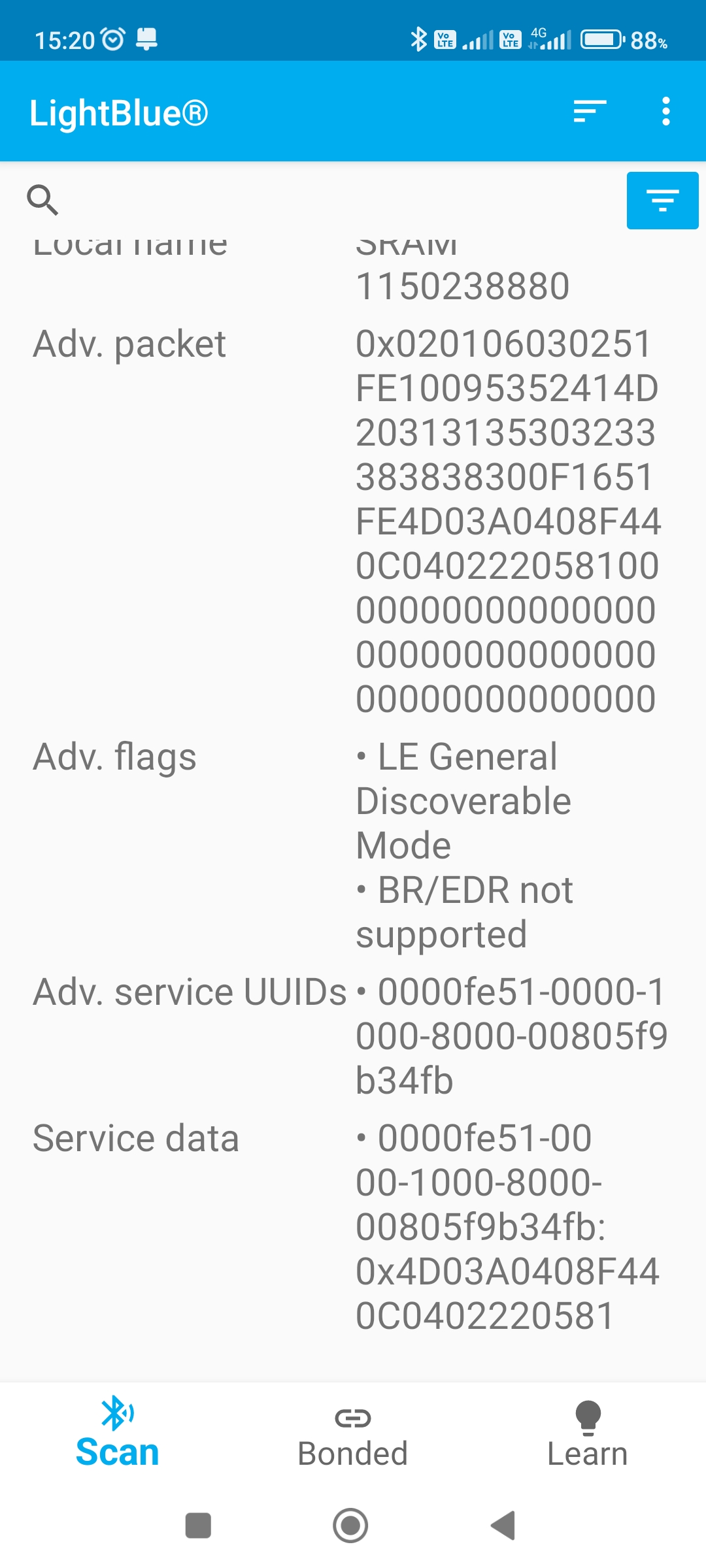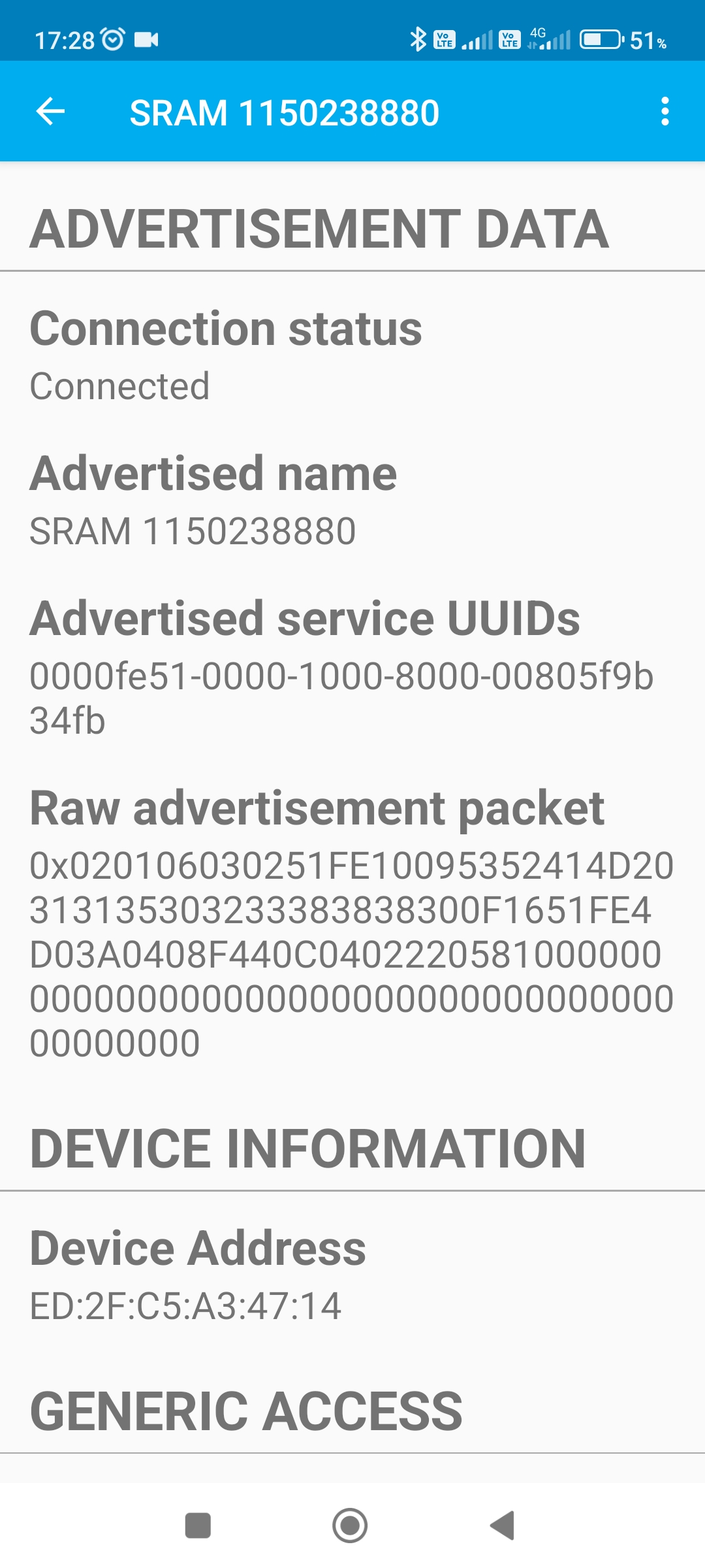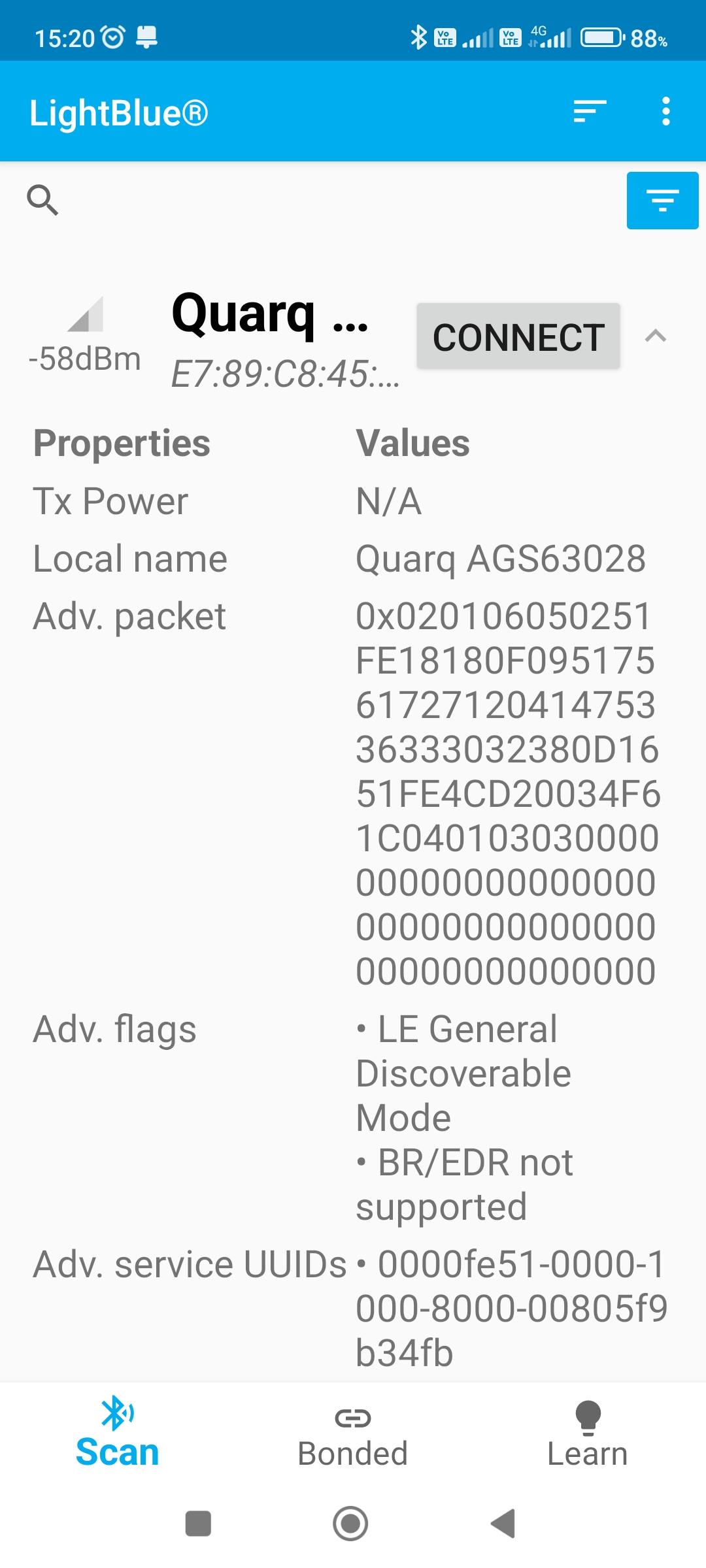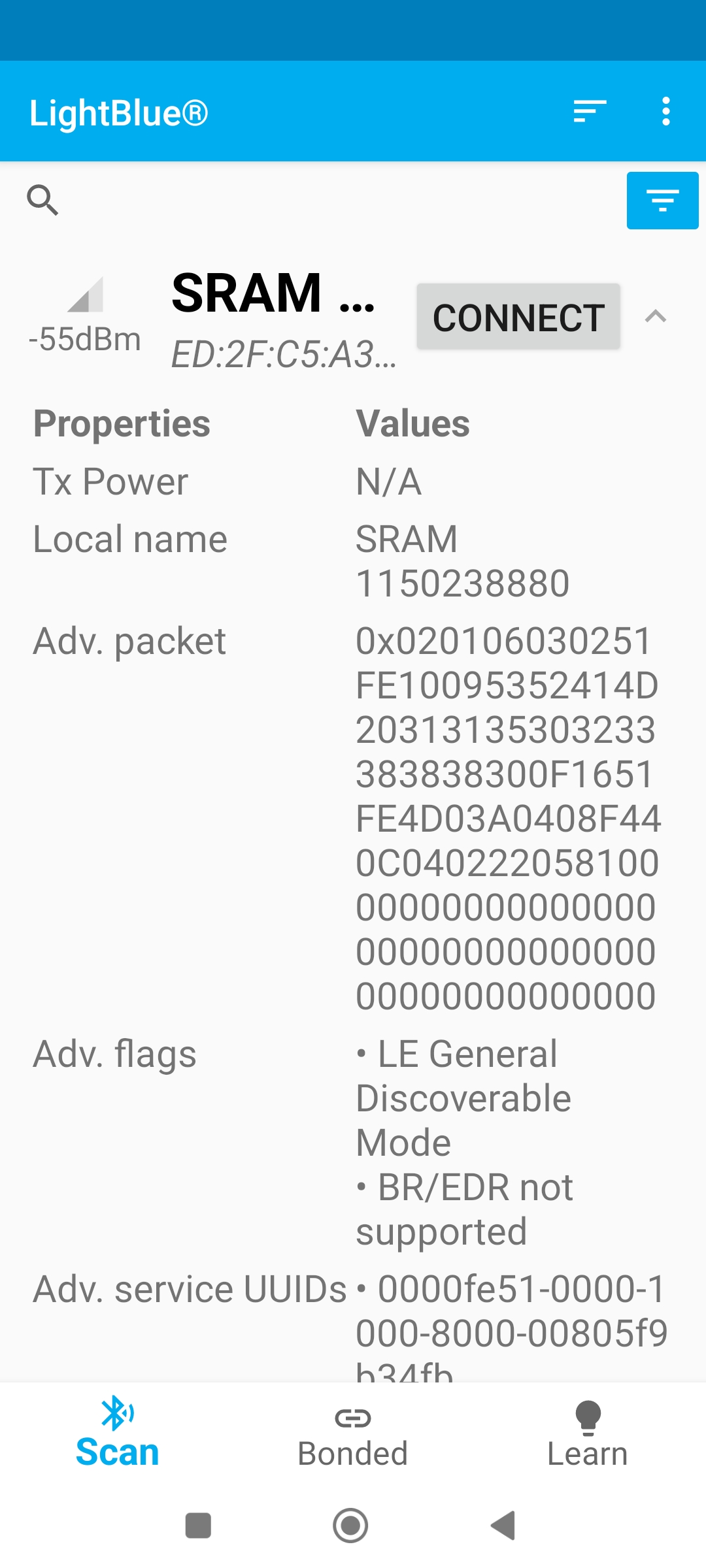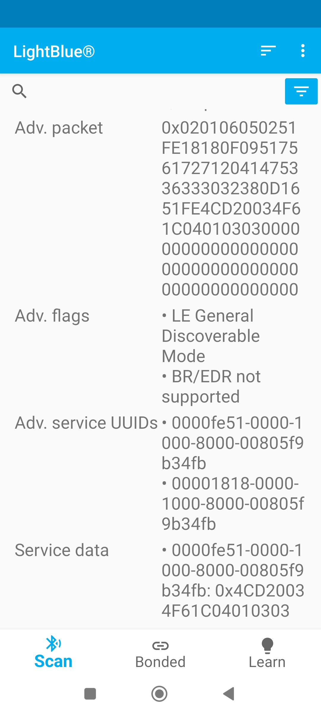 Jinak vás pak poprosím o nainstalování LightBlue aplikace z Google Play. Ta umožní po spuštění připojit se k senzoru a vyčíst všechny jeho možnosti které nabízí. Pokud byste mi tedy zkusil udělat delší screenshot (nebo více), hned té první obrazovky co uvidíte po stisku na "Connect" u vašeho senzoru, mohlo by to pomoci ověřit, zda tam není nějaká nekonzistence. Díky moc.