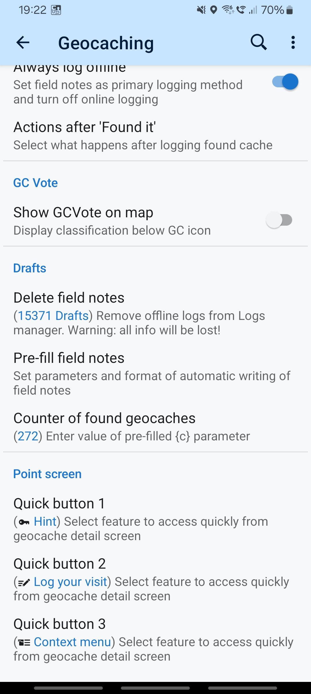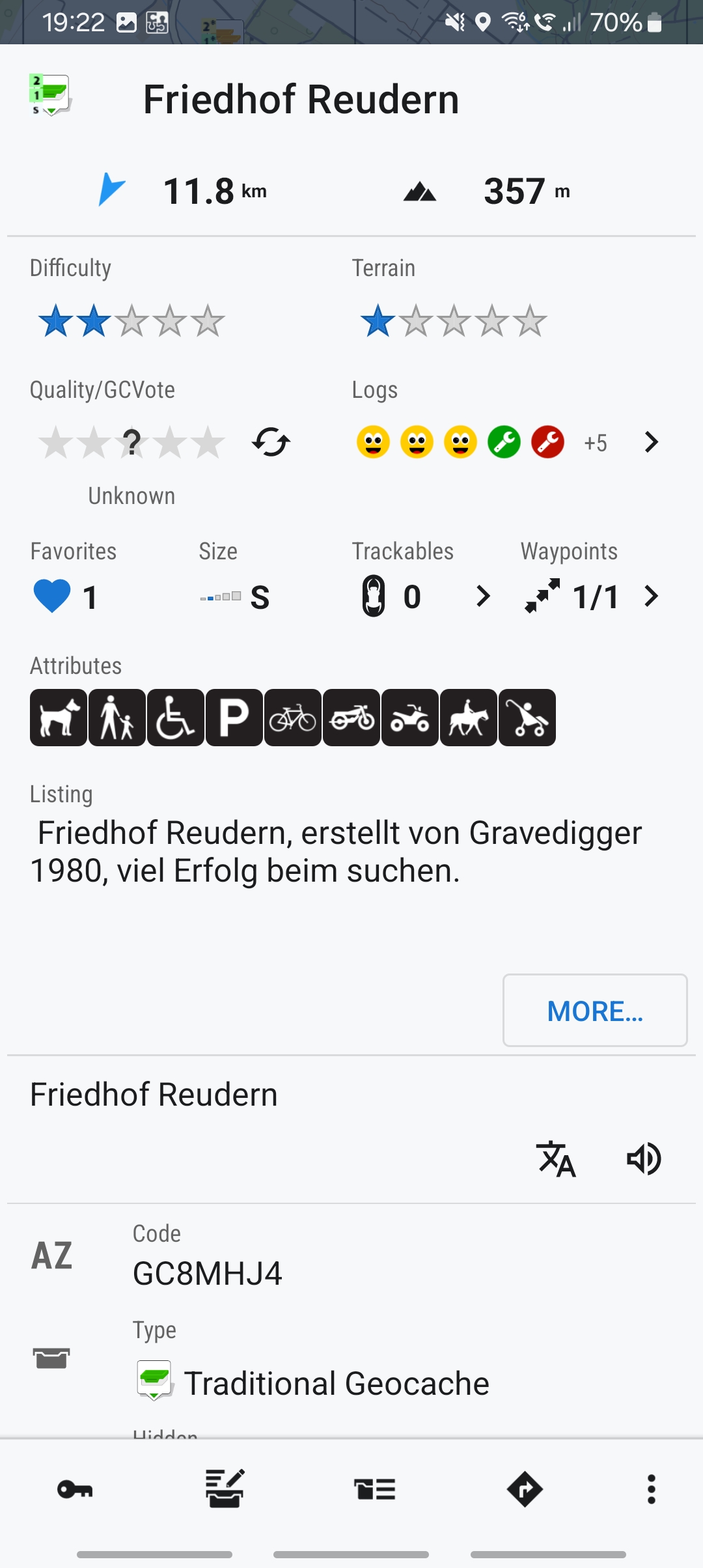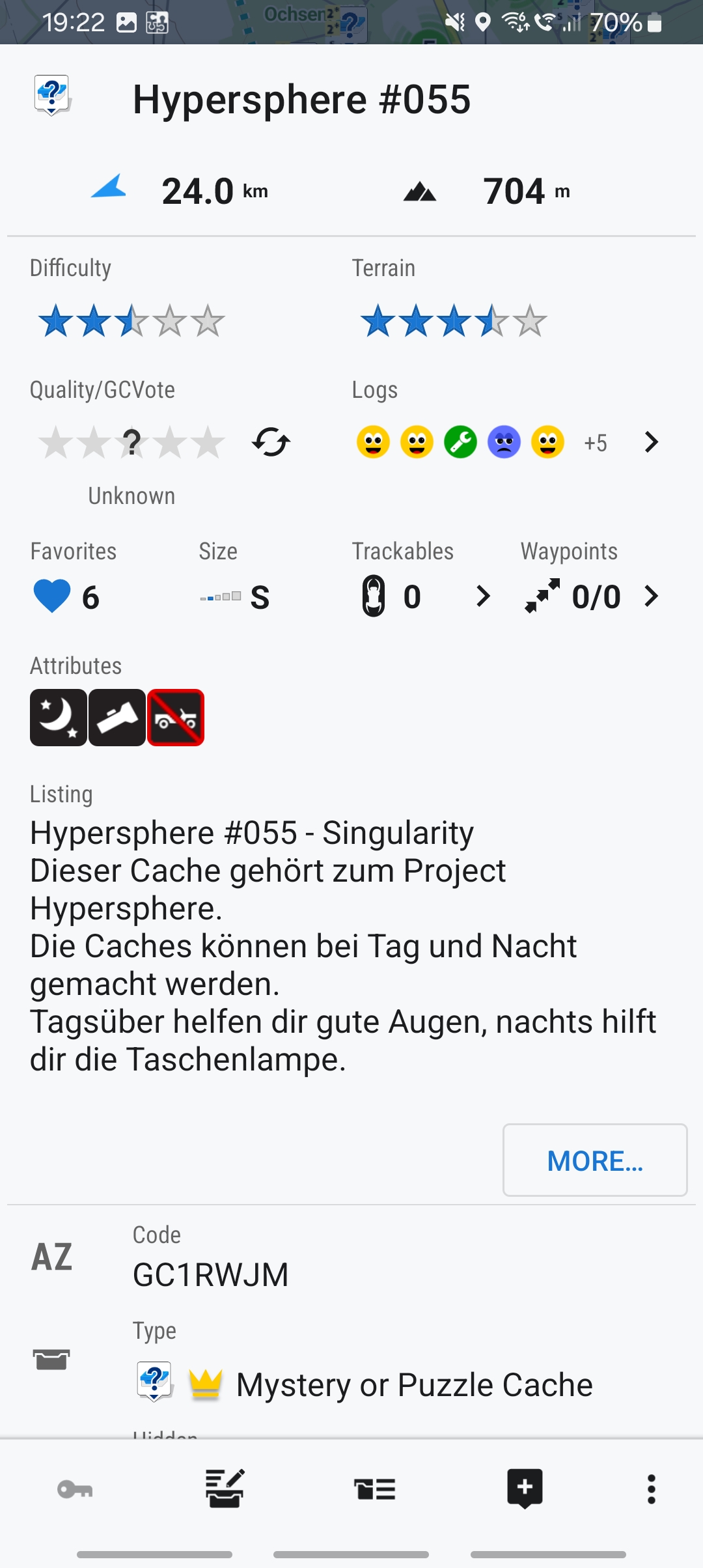 a Geocache shown via live map has a different bottom Locus menu as my local stored Geocaches. I mean the four direct buttons and the three dot menu.
