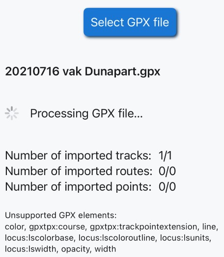 • The Locus map will try to import all routes or points in the selected GPX files.