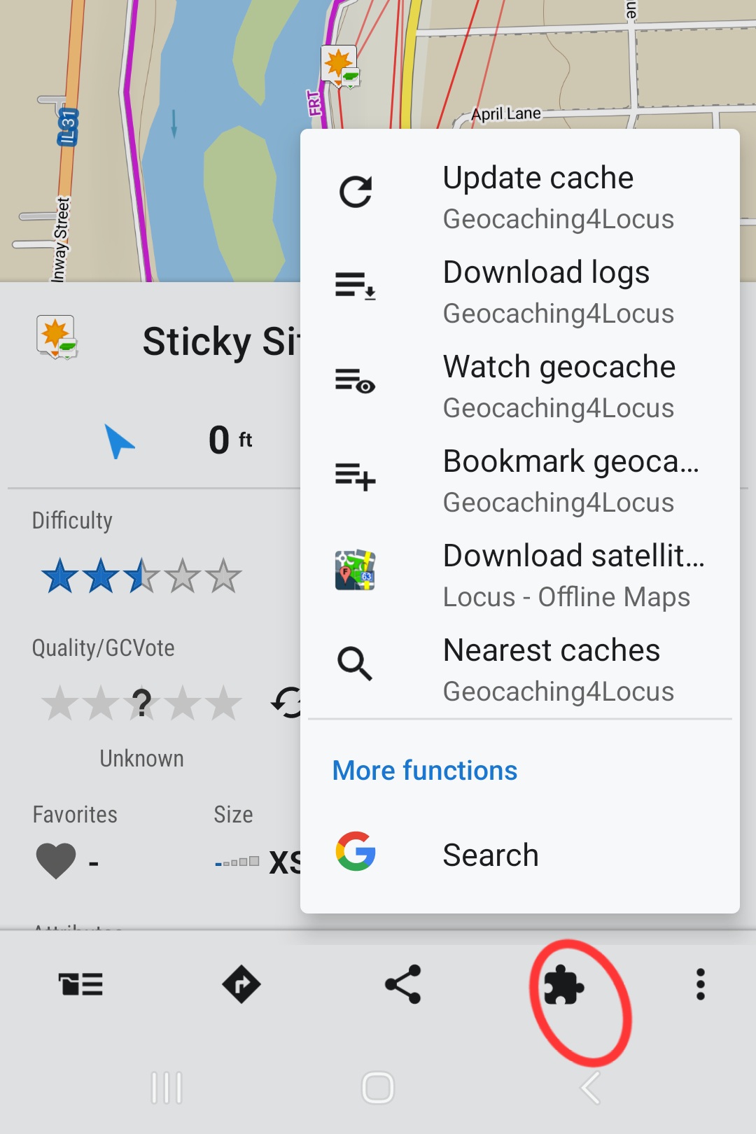When selecting the Tool icon while viewing a geocache, all the options bring up the incorrect dialog. Screenshots show what happens when selecting 'download logs' for example.