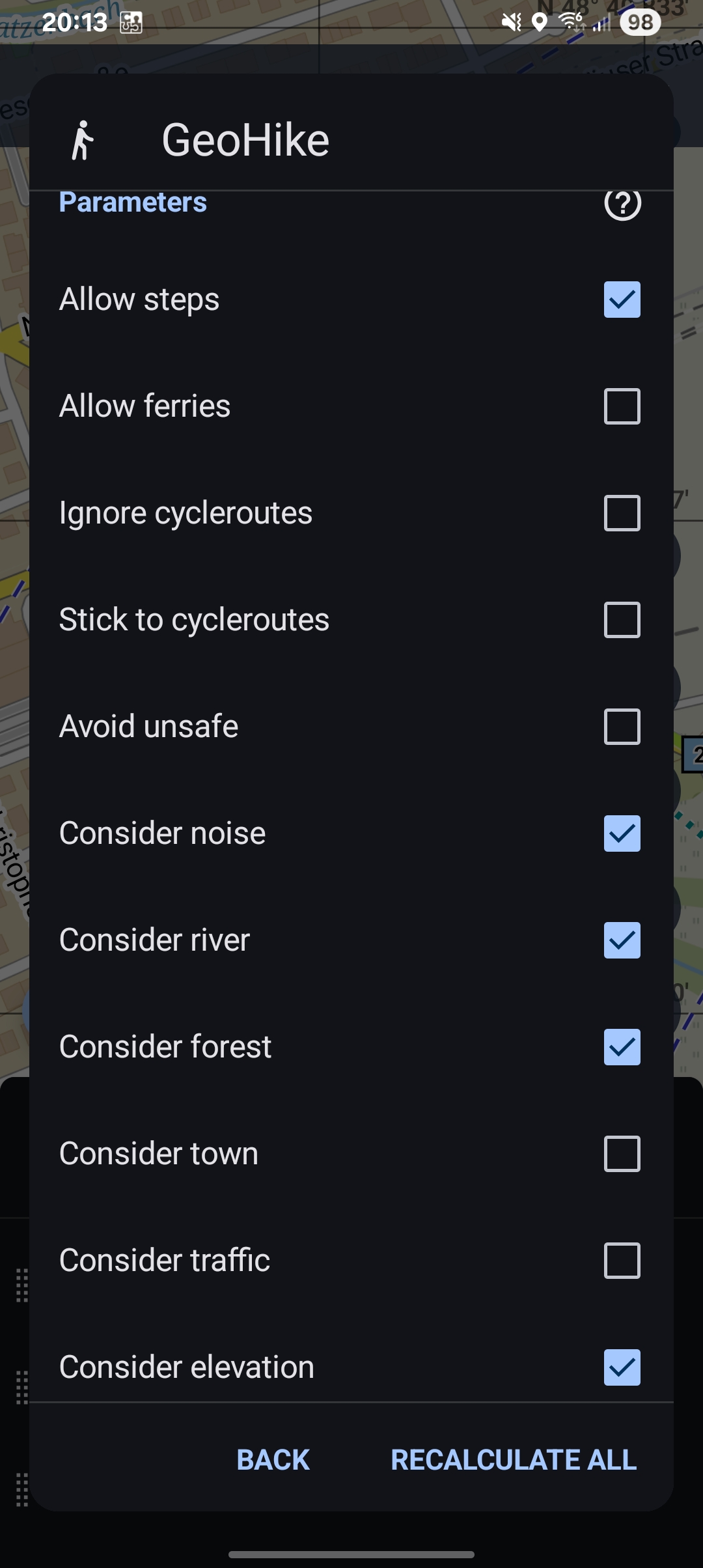 Hi Wolfgang. We have not synced the Locus-specific version of brouter with "parent" project yet. We are not happy about it, as the new "environment" consideration introduced in brouter recently is great. But it is a large re-build involving massive computation. (For every path in the world, we need to consider its surroundings, that means compute e.g. proximity of forests/green areas...). We have not forgotten, but this is big... Radim
