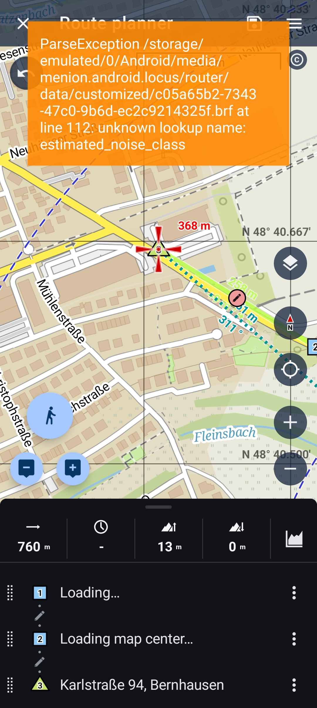 Error message on route planning with custom profile