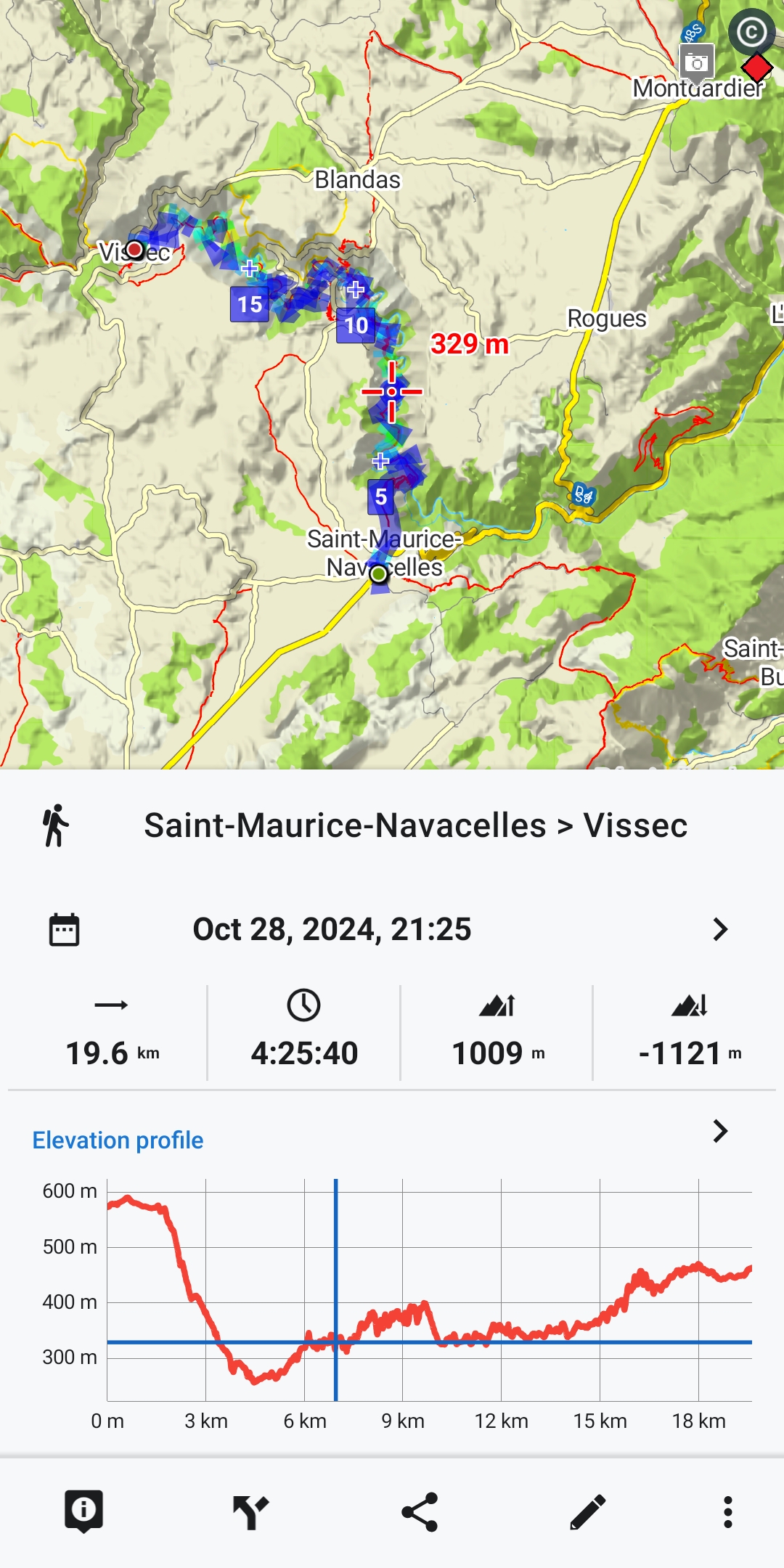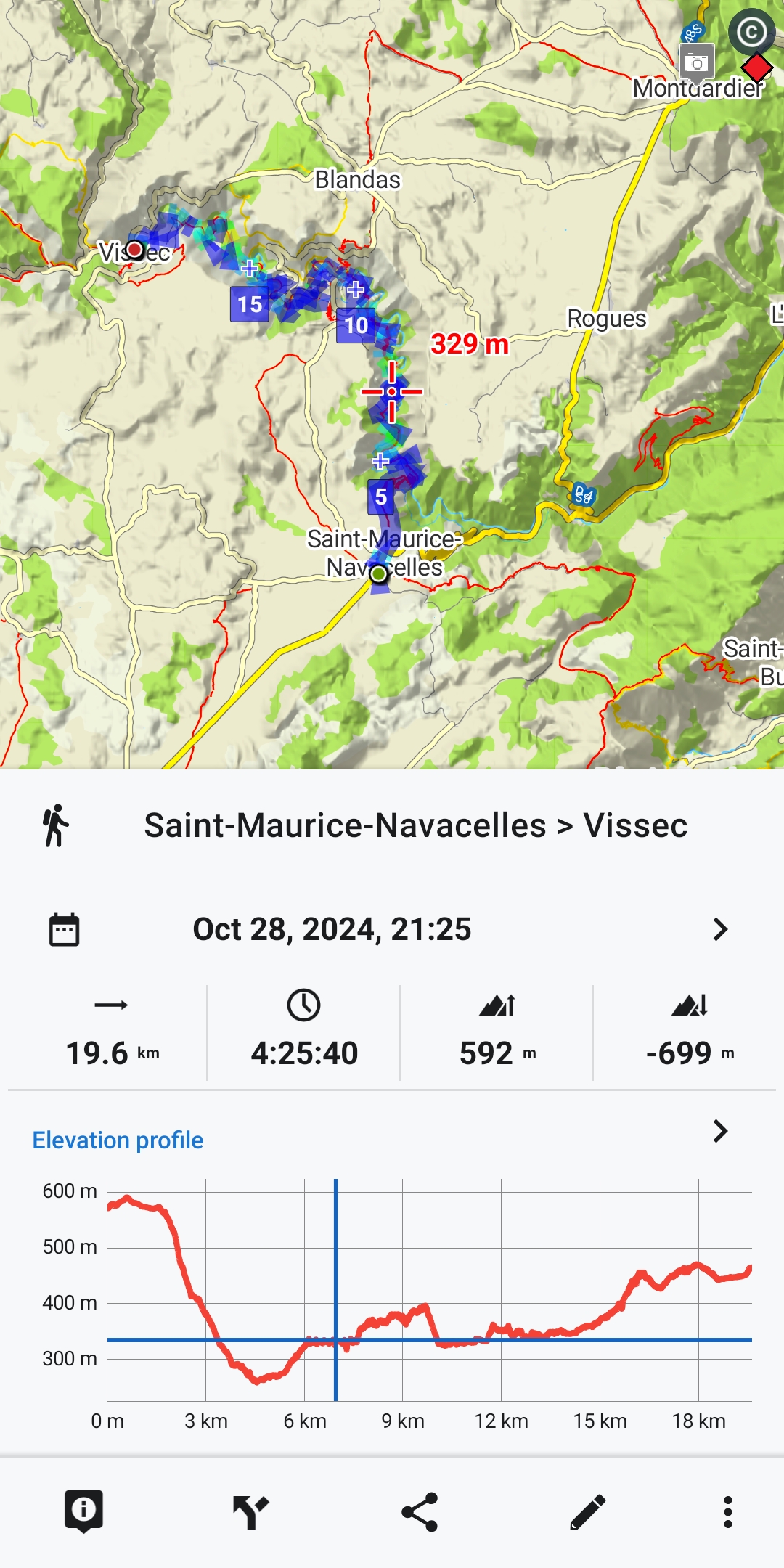 This route by Gergy Verjux in France is really strange. I re-planned the route in exactly the same way, both in the web planner and in the app it comes to 906 metres. After the update it was 1320 metres. If I recalculate the route (with LoRouter), I get 906 metres again. All with the "normal" HGT altitude data (not Sonny's). A huge difference.