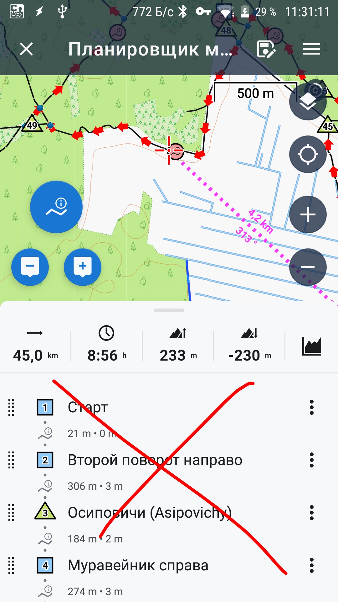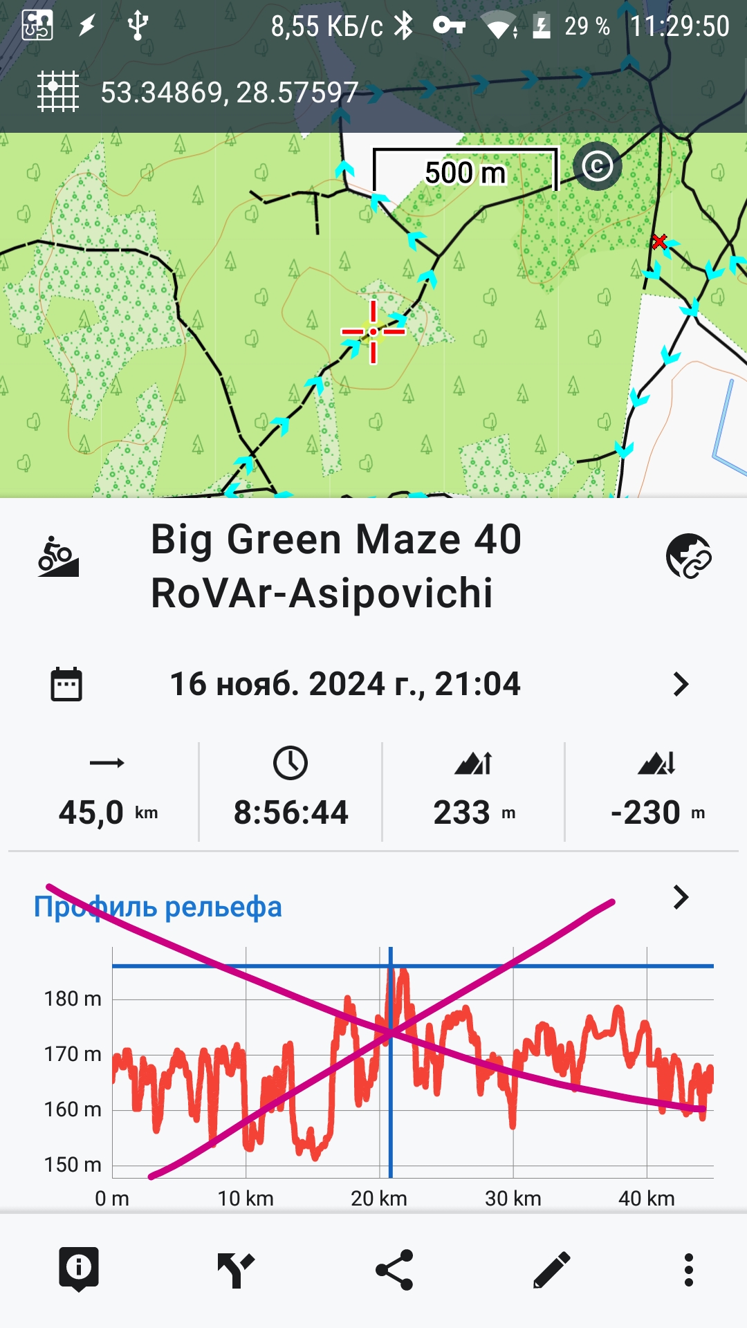 1. Height information has been added to the main information panels. Moreover, it was added harshly. Height information cannot be excluded from viewing. And height information takes up a lot of space. As a result, the main screen with the map is almost hidden. Yes, height information is important for athletes, but not all of us are athletes. Yes, altitude information is important in the mountains. But not all of us live in the mountains. Friends, why do I need heights in flat Belarus? The whole of Belarus is +- 100 meters high. The accuracy of the GPS altitude signal is 40m. What useful things can I see in the height profile of a track with a length of 100 km and a climb of 500 meters? Only white noise. :-(