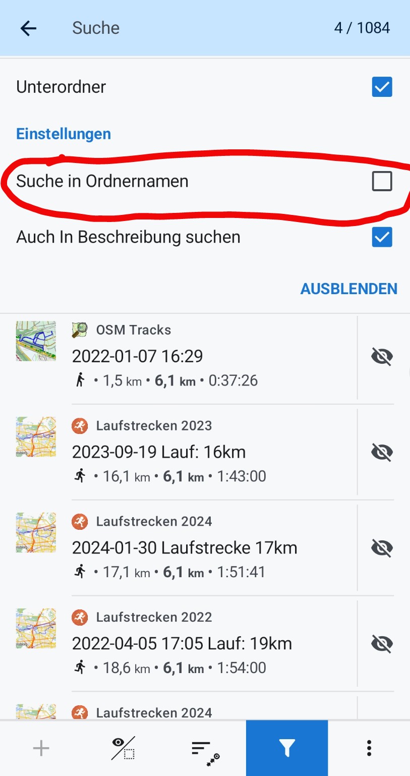 As I rearrange my points/tracks into the folder nesting which is now possible, I have created a lot of subfolders by now. I have to scroll a long way down to actually see the result of the search. Is there a trick or something to hide the folders in the search result?