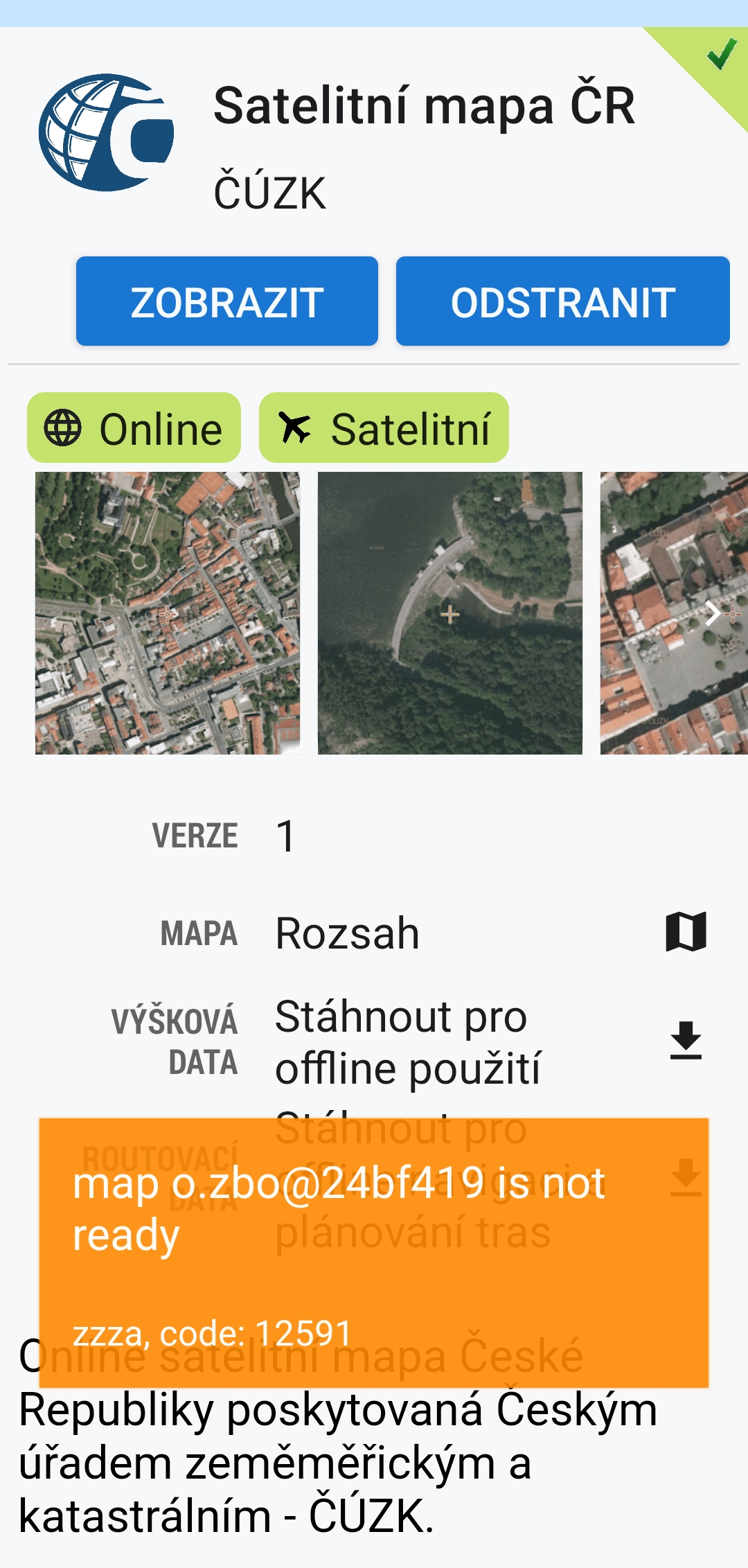 Dobrý den, při pokusu o připojení satelitní mapy ČR (CUZK) se objeví hlášení viz příloha. Mapa se nepřipojí.