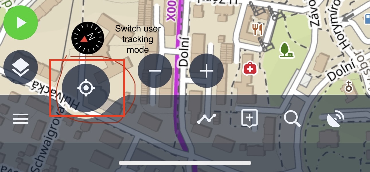 You can choose in the expert settings to have the direction indicator always visible. Each tap switches between north and direction of travel.