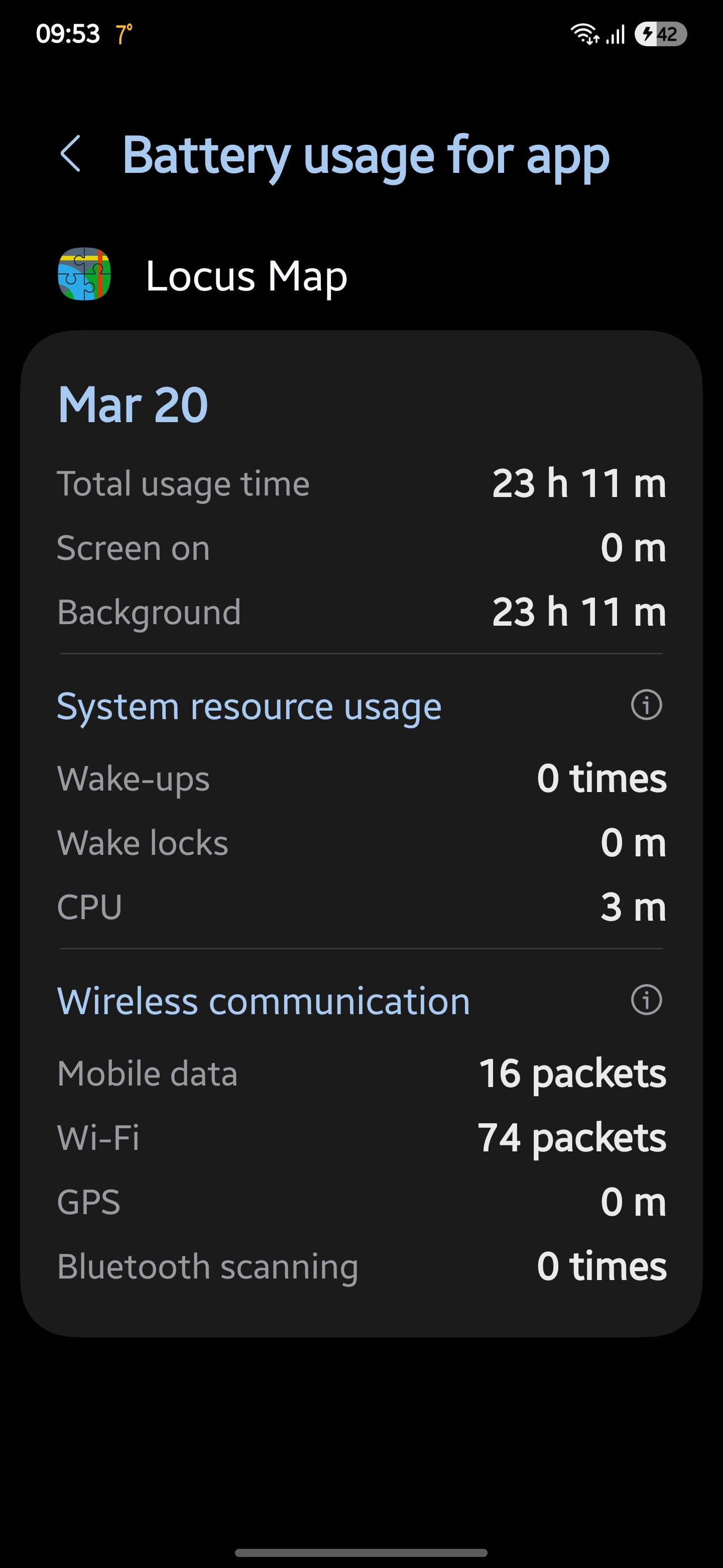 0.7% of daily battery..but I had never used Locus yesterday, so why use 0.7% ?