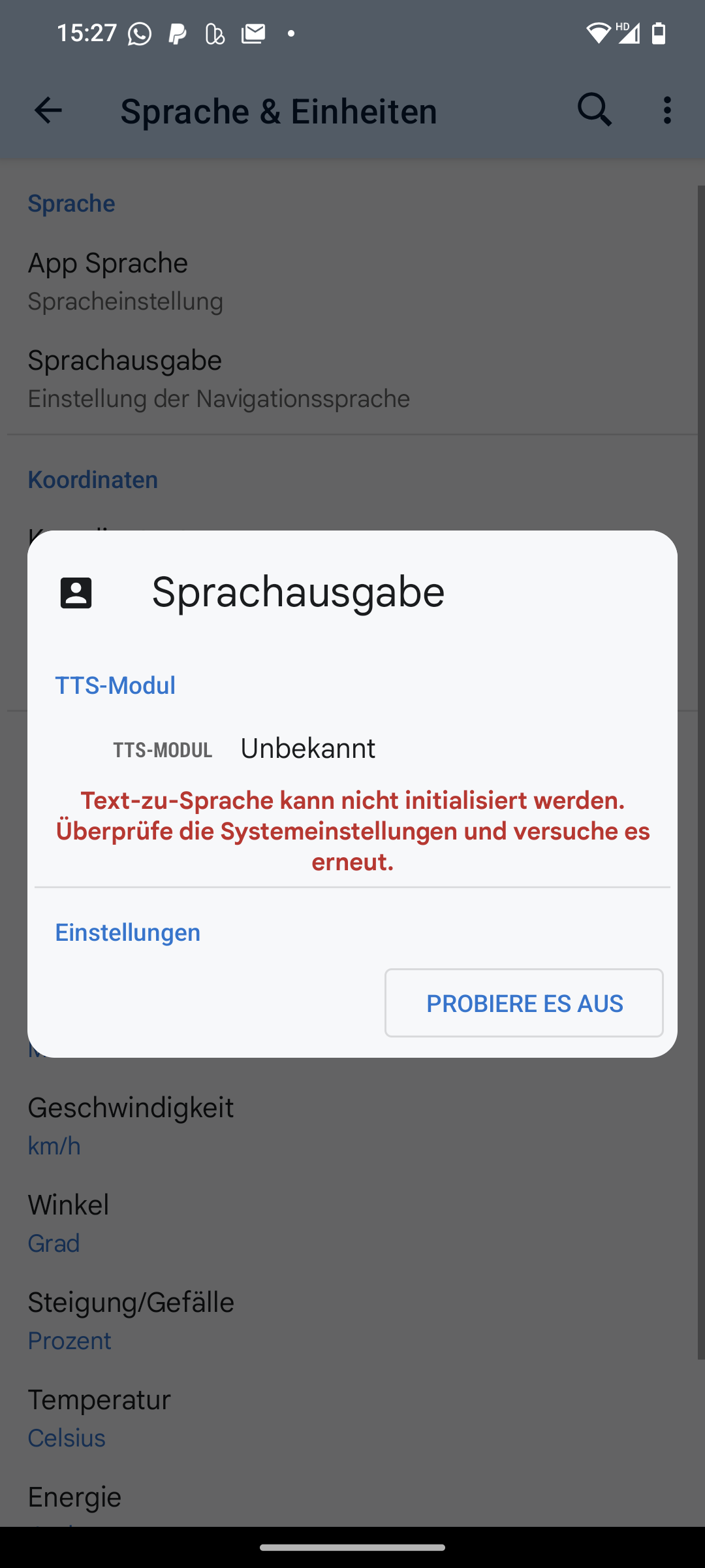 Not very helpful, since I've enabled the Google TTS service in my Settings and downloaded German and English (I am using Locus Maps in German, so it should find the matching language).