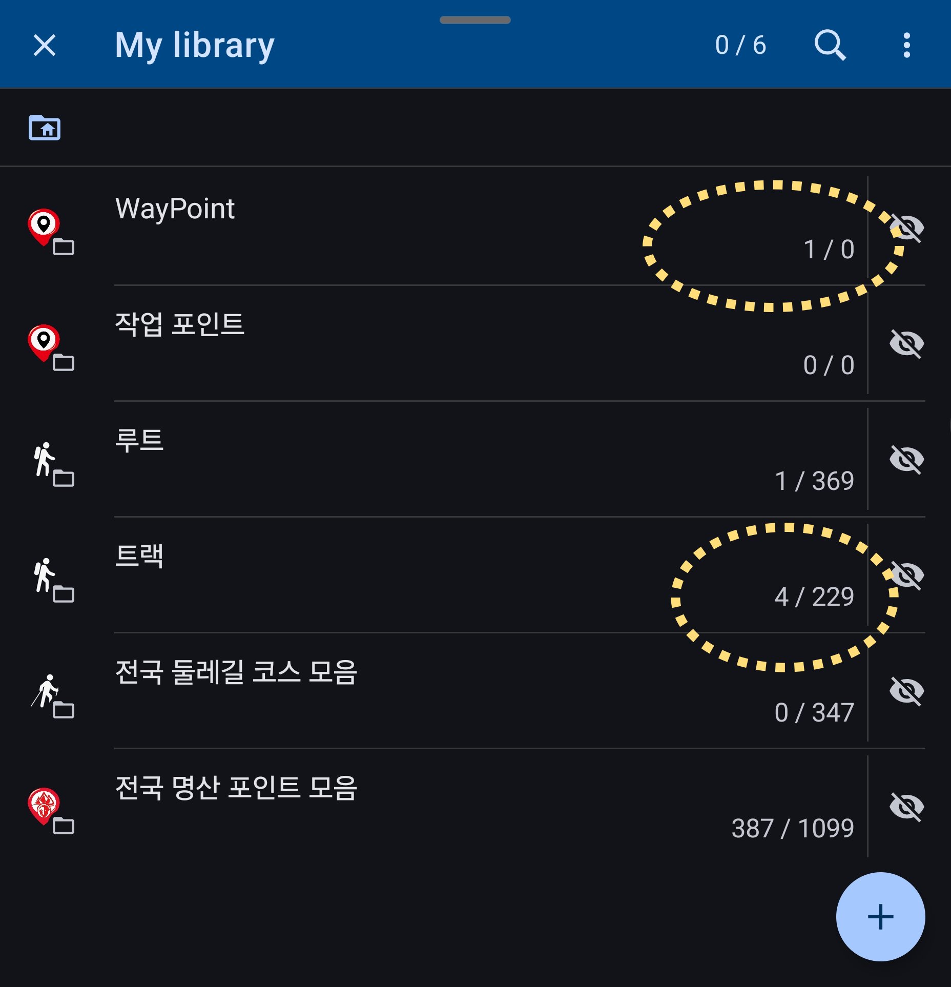 In My Library, there are no files in the waypoint folder as shown in the attached file, but it is displayed as 1/0 because there is one, and in the track folder, there are no active tracks, but it is displayed as 4/229.