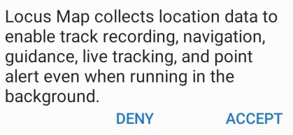 Long tap the Locus 3 icon, go for the (i), top right, look for Berechtigungen, go for location and set it to always. This way I have never seen such a request.