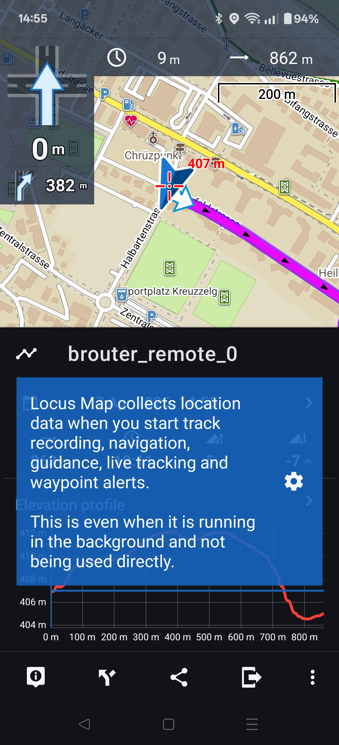 Thank you. Locus Map informs you that your system settings prevent it from running in the background. Tap the settings button and allow Locus Map access to location for all the time.