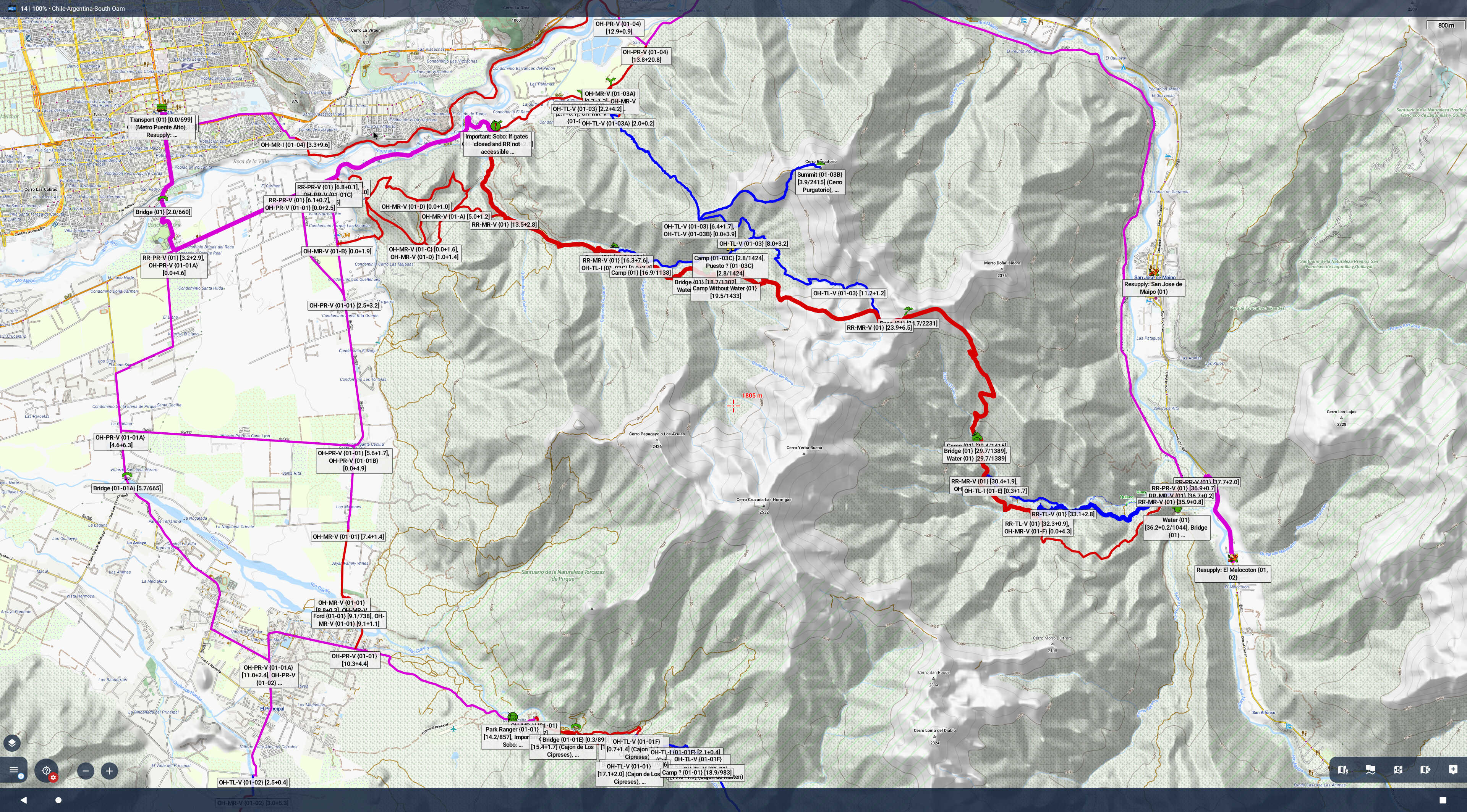 There is a hard limit of 100 to how many labels can be shown on screen at the same time [1], when they are set to be always visible. As Android devices can have screens of different sizes (and the size of the labels seems to be set in absolute physical values, which is a good choice ) this limit is sometimes too high (see the screenshot from my phone - the map is barely visible behind the labels), sometimes too low (see a screenshot from my 4K monitor when I run Locus with it - there is room for plenty more labels.).
