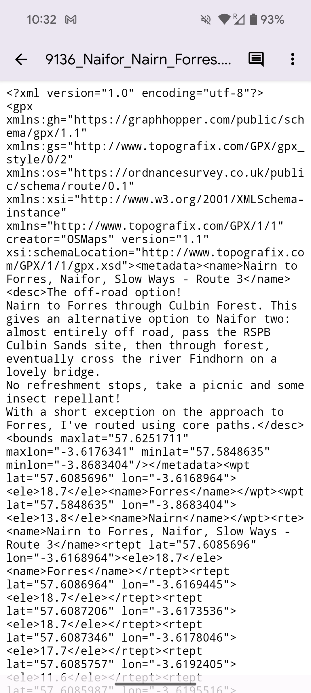 (By the way if you import the RTEP file into Locus then re-export it to Strava then re-export it from Strava as a gpx and then import the Strava GPX into Locus, it comes in as a track (with no black dots). Strava somehow converts the RTEPS into TRKPTS and artificially adds time stamps to each TRKPT at an average speed of 3.6km/h. I’ve no idea how it does it, and it’s a very cumbersome method, but at least it does remove the dots!)