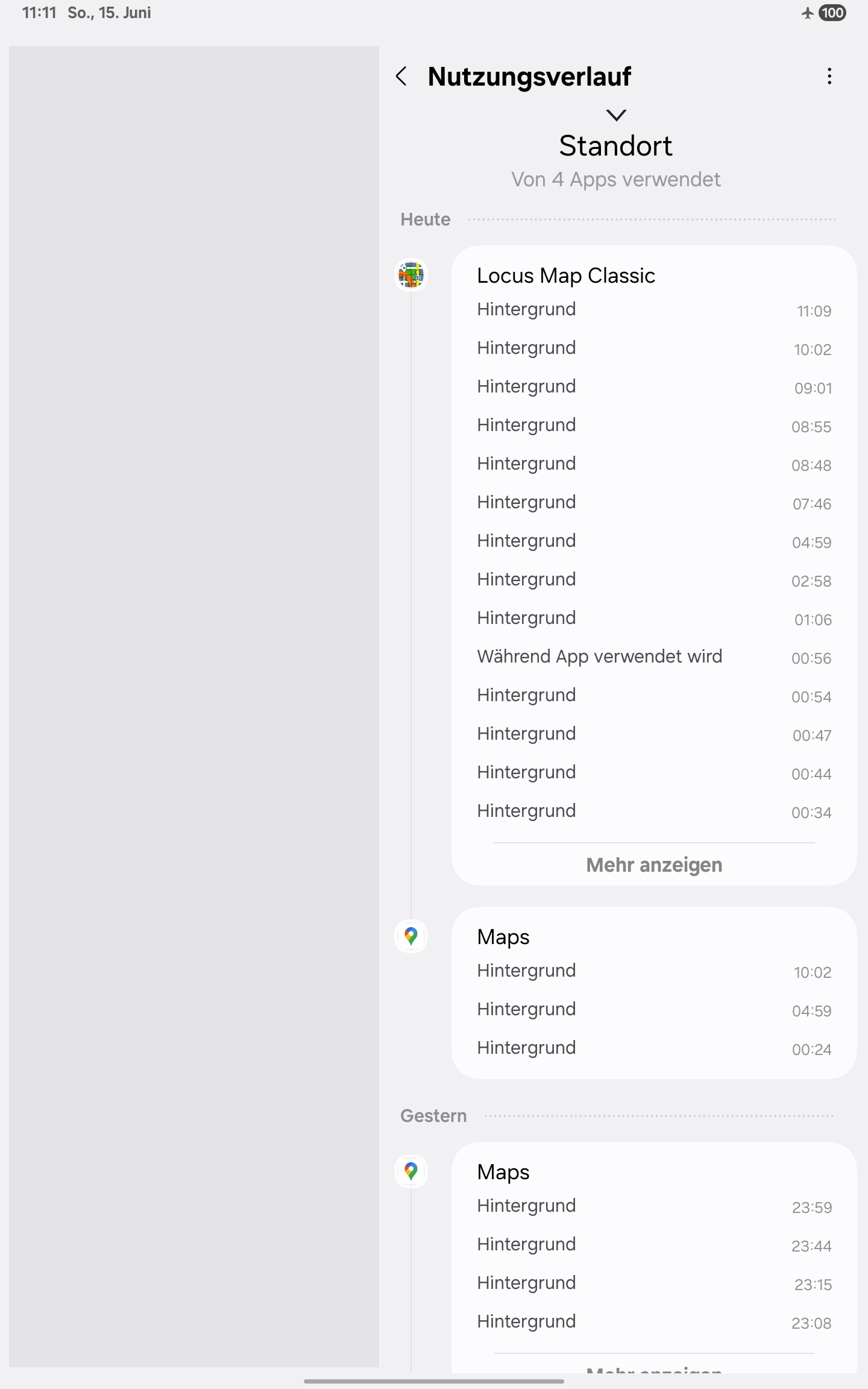 I use Locus Classic and noticed that the app accesses my location every few minutes to few hours, even though the app was only running in the background (it was not being used actively - the entire tablet had not been used between ~1 AM and ~11 AM).