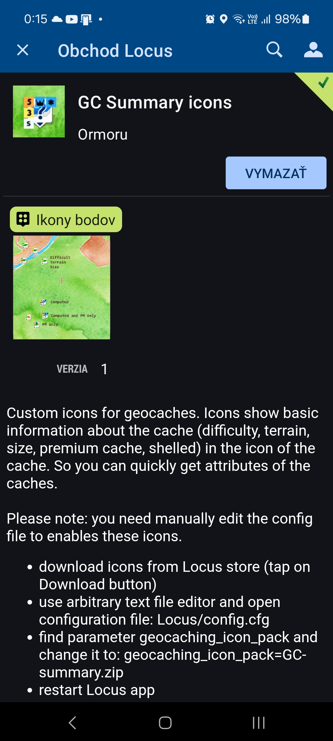 Hello, I use GC Summary Icons from Locus Store. On Locus Map Classic it is correct, but on Locus 4 on every trip DT flags dissapears from icons. I attached screenshots (with pair of icon - on left icon DT flag disappeared, on the right icon it is still there). Fix is the reopening of Locus, but after some time the problem reappears.