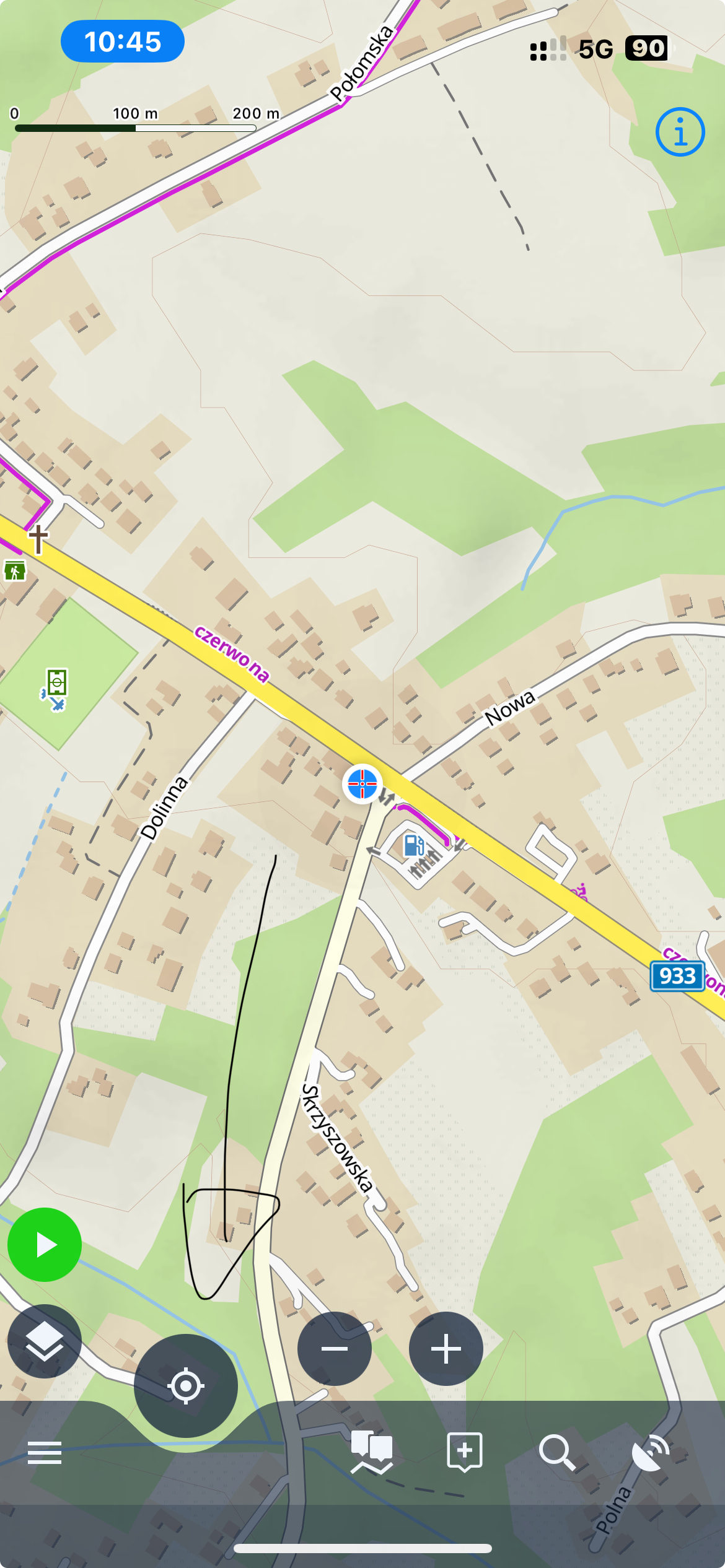 Hello, I would like to suggest moving the plus minus and center buttons to the right side of the screen because when driving according to the plan you often have to zoom in and then imprecise touch will hatch the bottom bar or a new point. Floating icons would be a dream. The second topic is that the central guidance is lost after changing direction. You have to use the center icon.