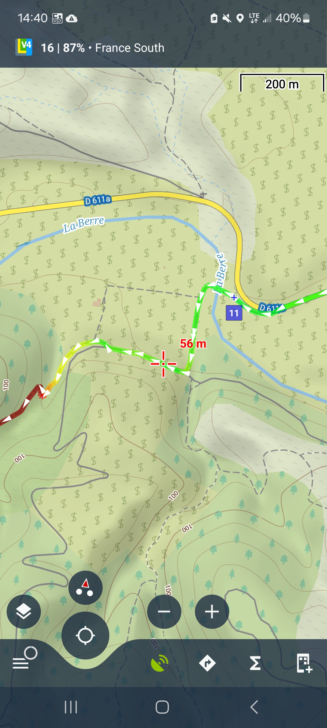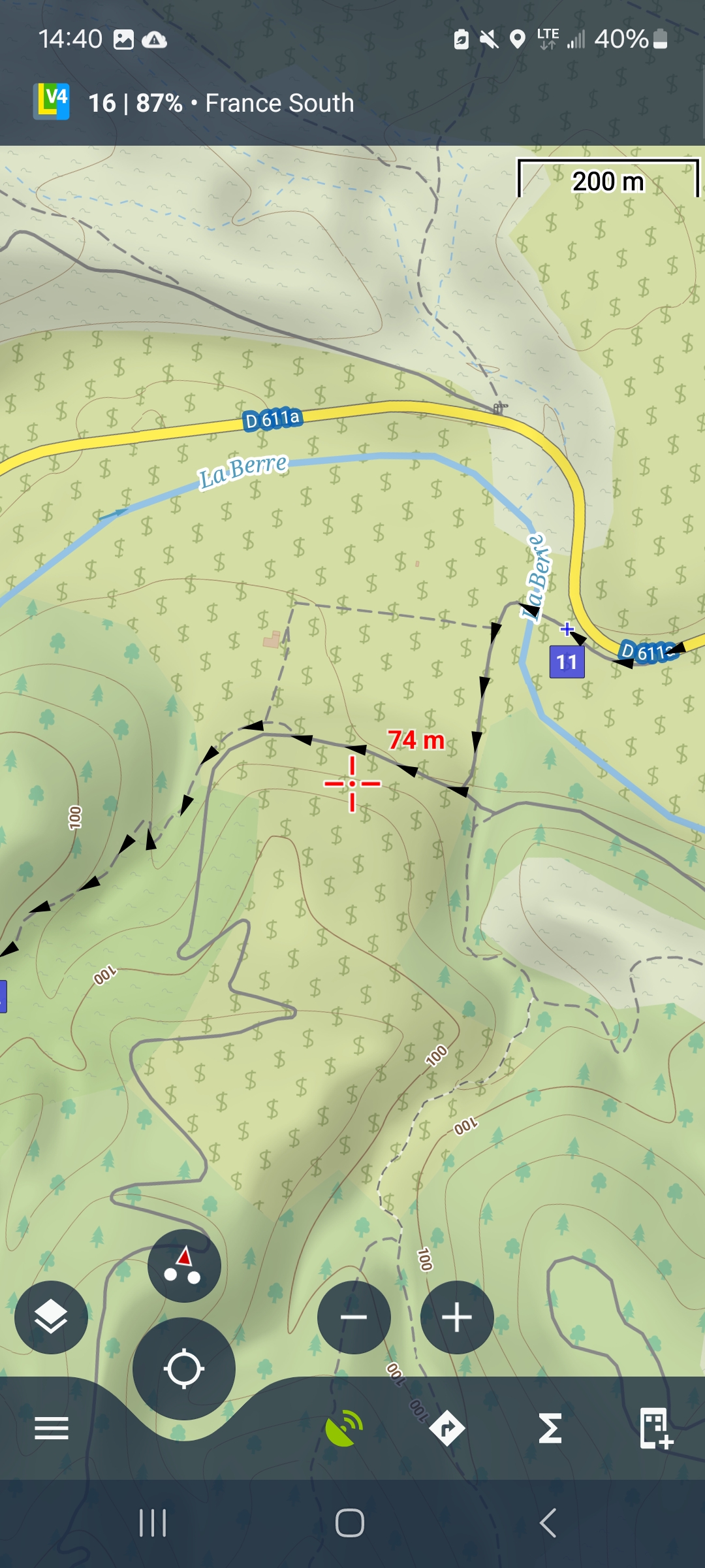I can see the track (arrows) and the type of road between arrows.