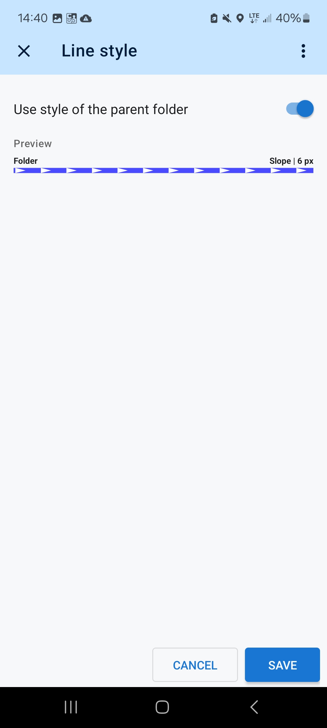 - Line style map of the folder are set in my standard style. For me it is coloring mode = slope.