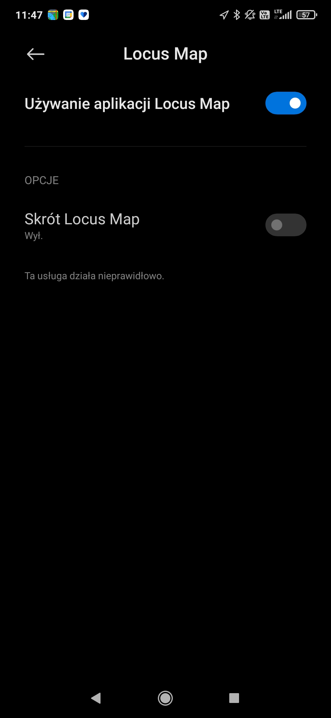 thank you for reaching out to us. I understand that you haven’t changed any settings. The reason the application now asks to enable the accessibility service is that we’ve changed the way the screen is turned off. We switched from an outdated solution, which required the app to be set as a device admin, to a new method using the accessibility service. This service must be enabled for Locus Map in the system settings.