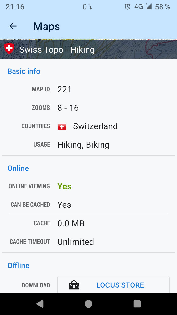 Although I enabled "cache maps", Locus does not save the tiles of online maps I visited. I can see that because the cache is always 0.0Mb and when I turn on "cached maps only" (or switch into flight mode) I get a blank screen, although I had the maps open seconds ago.