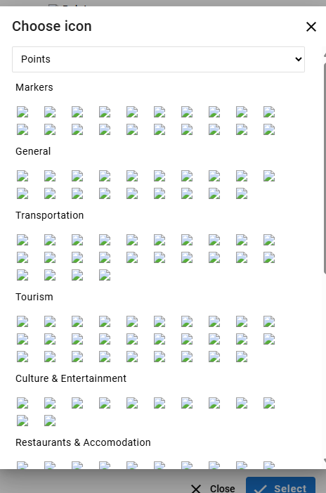None of my icons show up in the route planner. I tried Chrome and Edge browsers and they both have the issue.