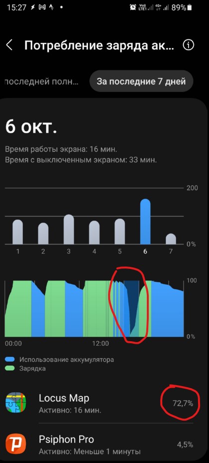 And even if it turns out the old battery is to blame, it's still worth trying to optimize some processes. For example, I found a process in LogCat that was wasting power. When there's no internet connection, Locus tries to contact the monitoring server every second, even though the settings say "every 15 seconds," which is impractical and contradicts the settings.